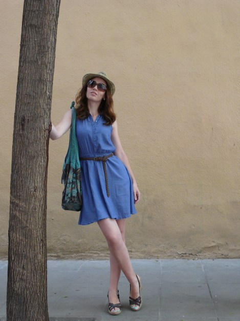 Llevo sombrero de Sfera (de temporada), vestido de H&M (de temporada), bolso de Sfera, sandalias de Oysho, cinturón de Stradivarius y gafas de sol Ralph Lauren.