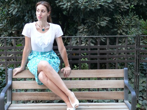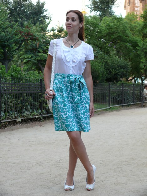 Esta semana estoy medio de vacaciones, por lo que los posts están siendo un poco breves :). Os dejo con las imágenes de un look de este verano que me encanta por la frescura y luz que aportan la combinación de colores y el estampado.