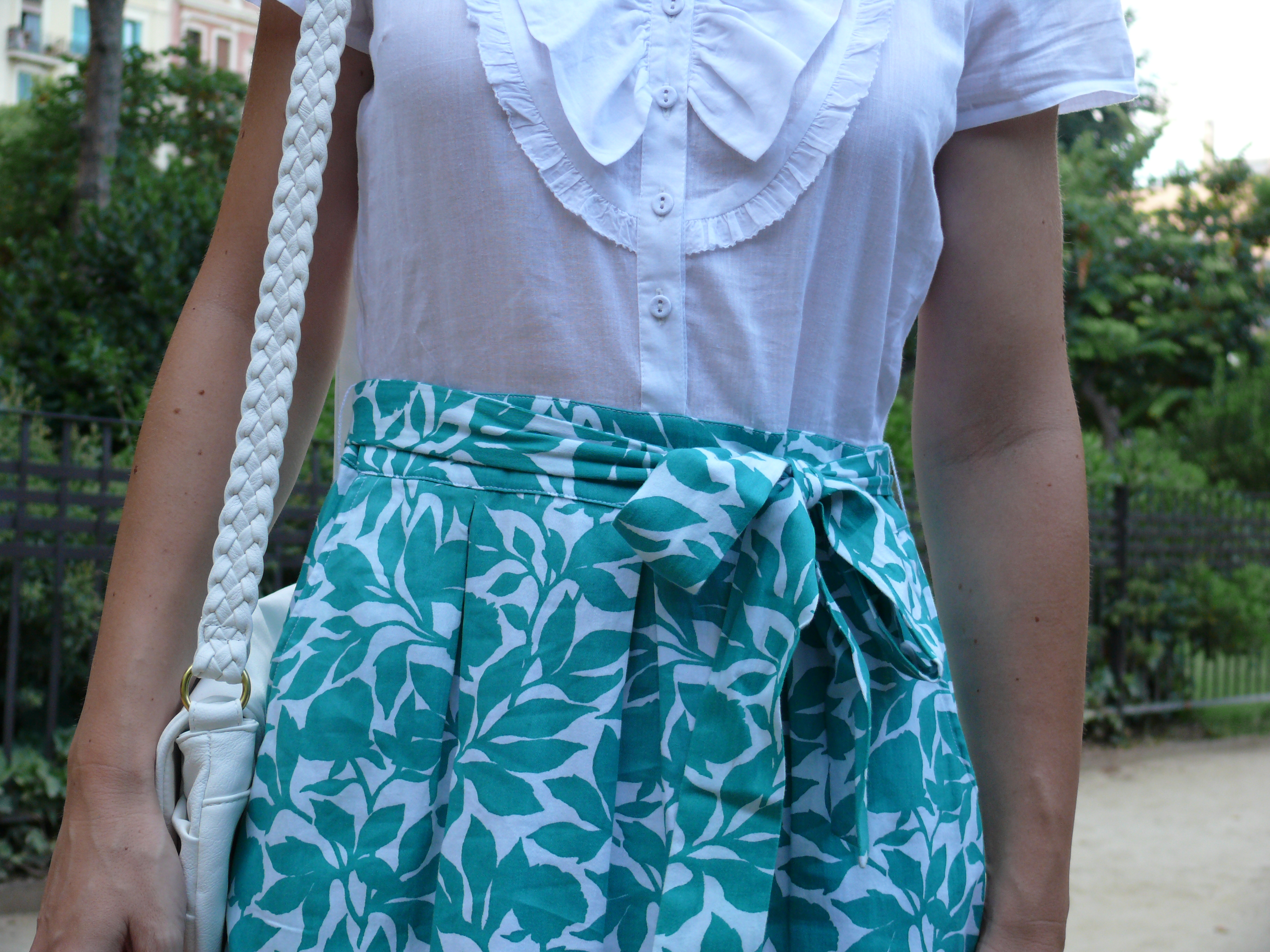 Esta semana estoy medio de vacaciones, por lo que los posts están siendo un poco breves :). Os dejo con las imágenes de un look de este verano que me encanta por la frescura y luz que aportan la combinación de colores y el estampado.