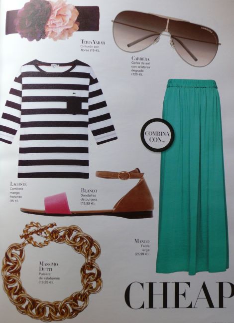 Así que, aunque en teoría quedan dos telediarios para que empecemos a sacar las chaquetillas y camisetas de manga larga, todavía apetecen los helados y los looks veraniegos, por lo tanto os muestro algunos collages que están publicados en la revista Shopping Woman. Es muy completa (imprescindible para fashionistas), muestra 483 prendas y accesorios, 30 looks de it girl y claves de estilo chic & cheap. Es bimensual, estas páginas son del número 1 (Julio/Agosto).