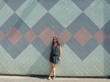 Las fotos que muestro a continuación están hechas en una fachada que me llamó la atención desde el primer día que la ví (no sé si por bien o por mal :), pero como mínimo por peculiar). Por aquel entonces no entraba en mis planes hacer un blog de moda, pero sabía que, conmigo o sin mí, fotografiaría la fachada de alguna manera, aunque fuera simplemente para tener entre mis instantáneas los colores tan pastelones y primaverales de la entrada al «Bingo Billares» de BCN. Aunque también hay que decir, que de lejos y por la noche con las luces es bastante diferente a como la veis aquí.