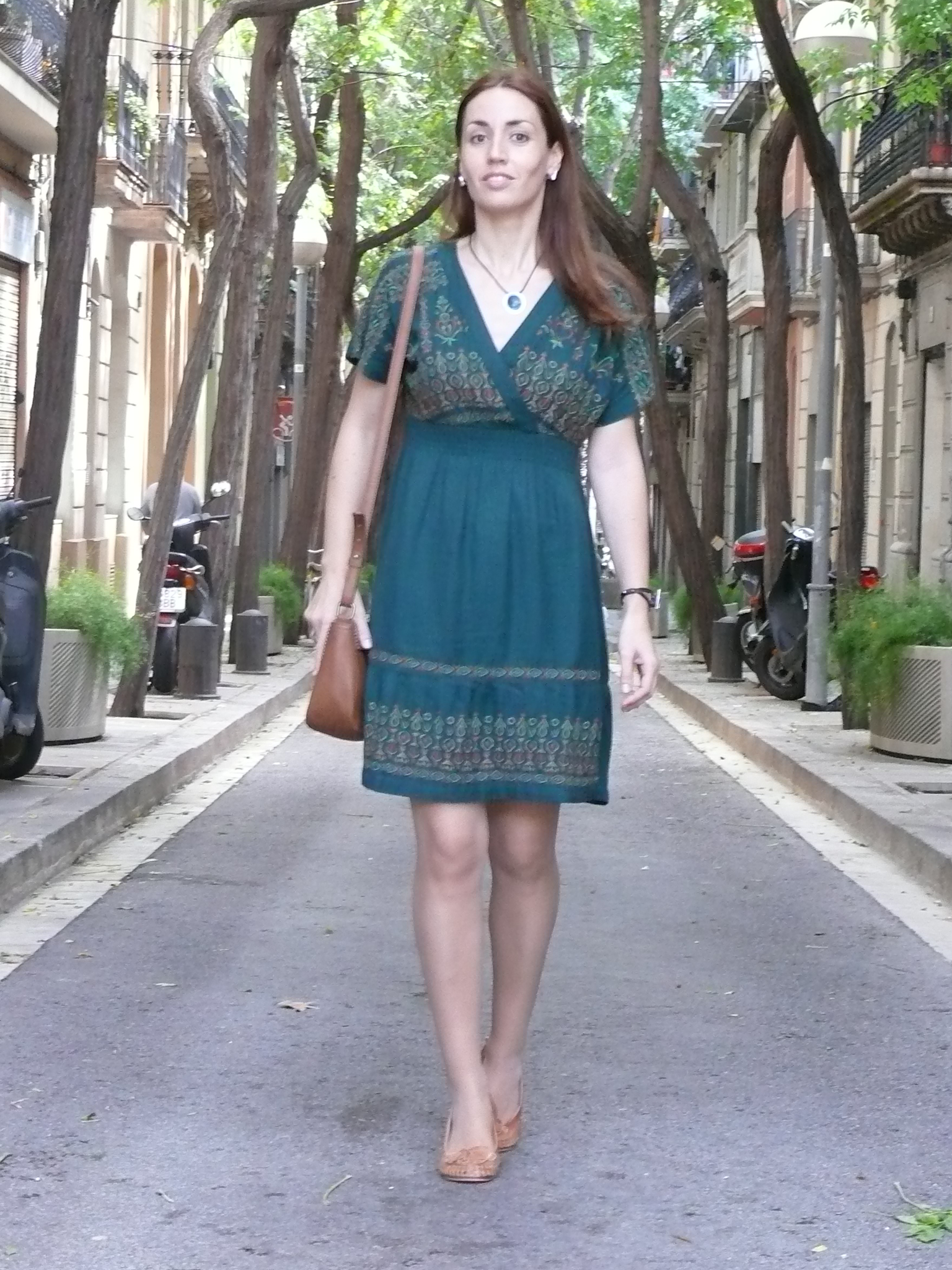 En el look de hoy he optado por un vestido ideal para este tiempo, pues el tejido aporta calidez, pero al ser de manga corta y escotado no molesta si hace un poco de calor. Las tonalidades también son apropiadas para el otoño.