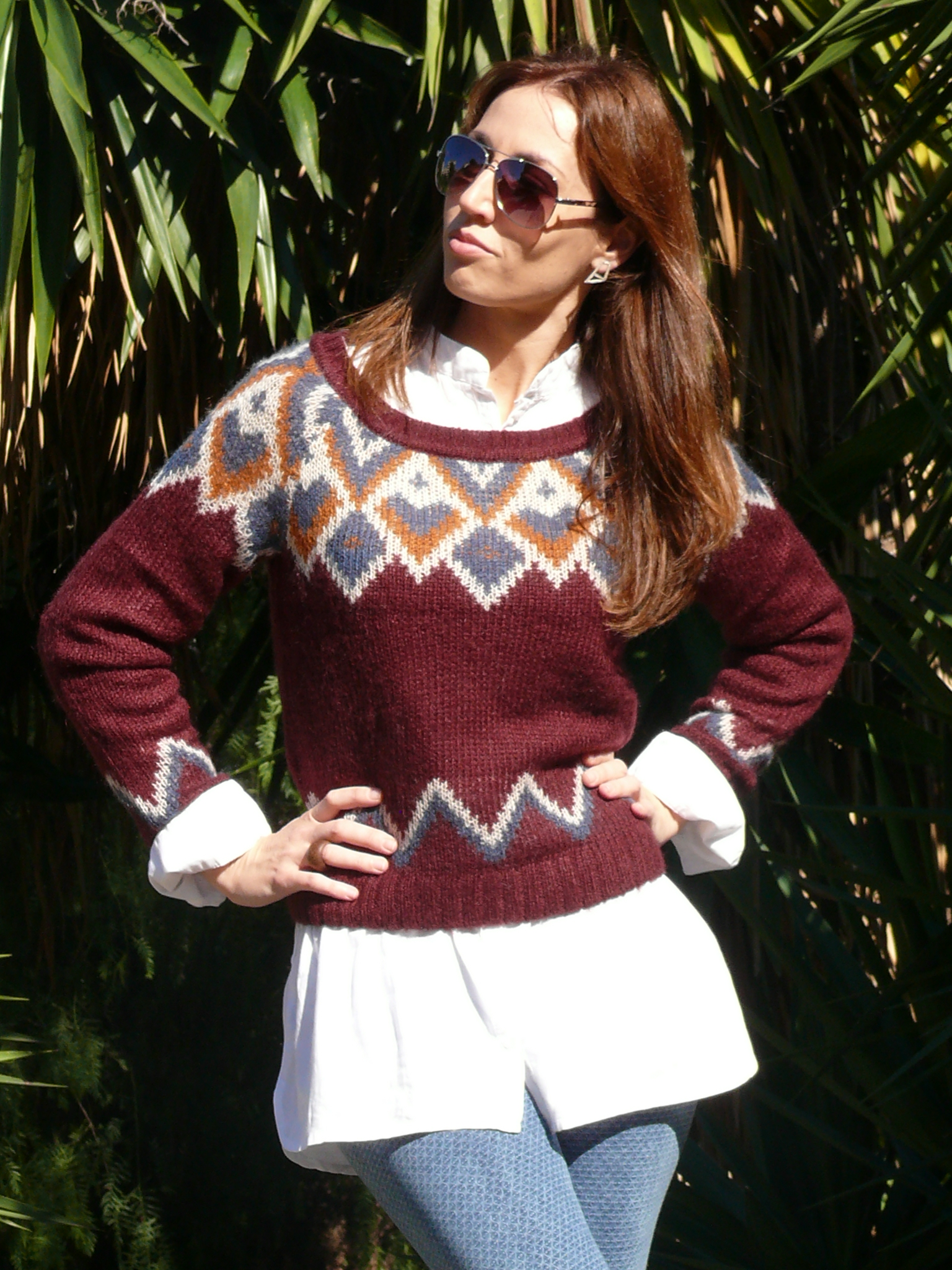 me encanta el estampado étnico, el jersey es precioso pero para mi la estrella del look es el vaquero con ese estampado sutil, muy guapa!