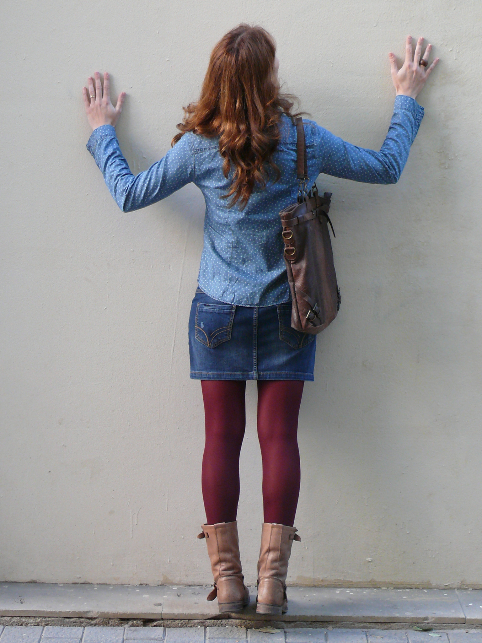 Suéter y camisa de H&M (A/W 2012-13), falda de STR (S/S 2011), medias de CALZEDONIA, botas de IS TO ME (A/W 2011-12), bolso STR (old) y gafas de RALPH LAUREN.