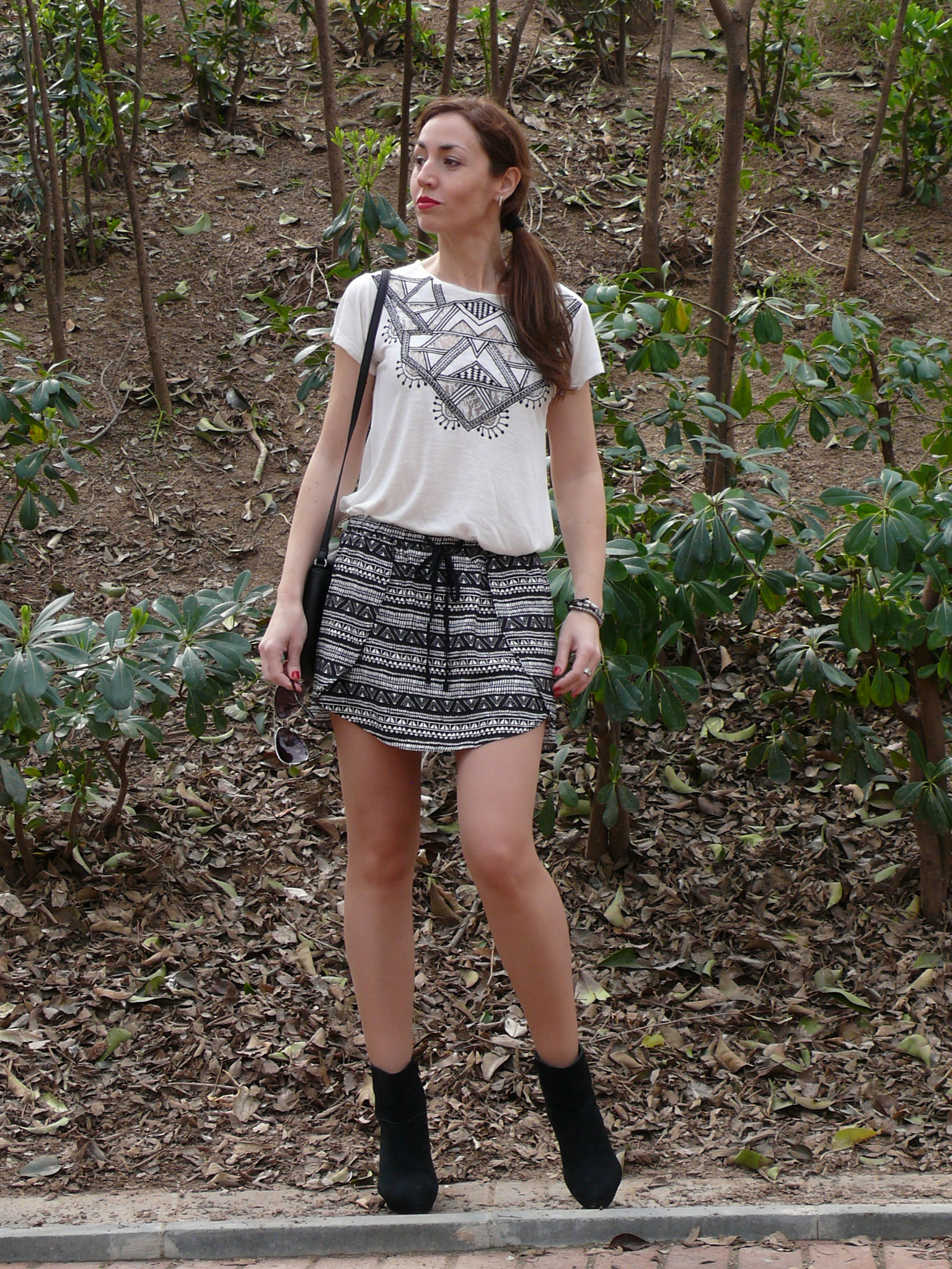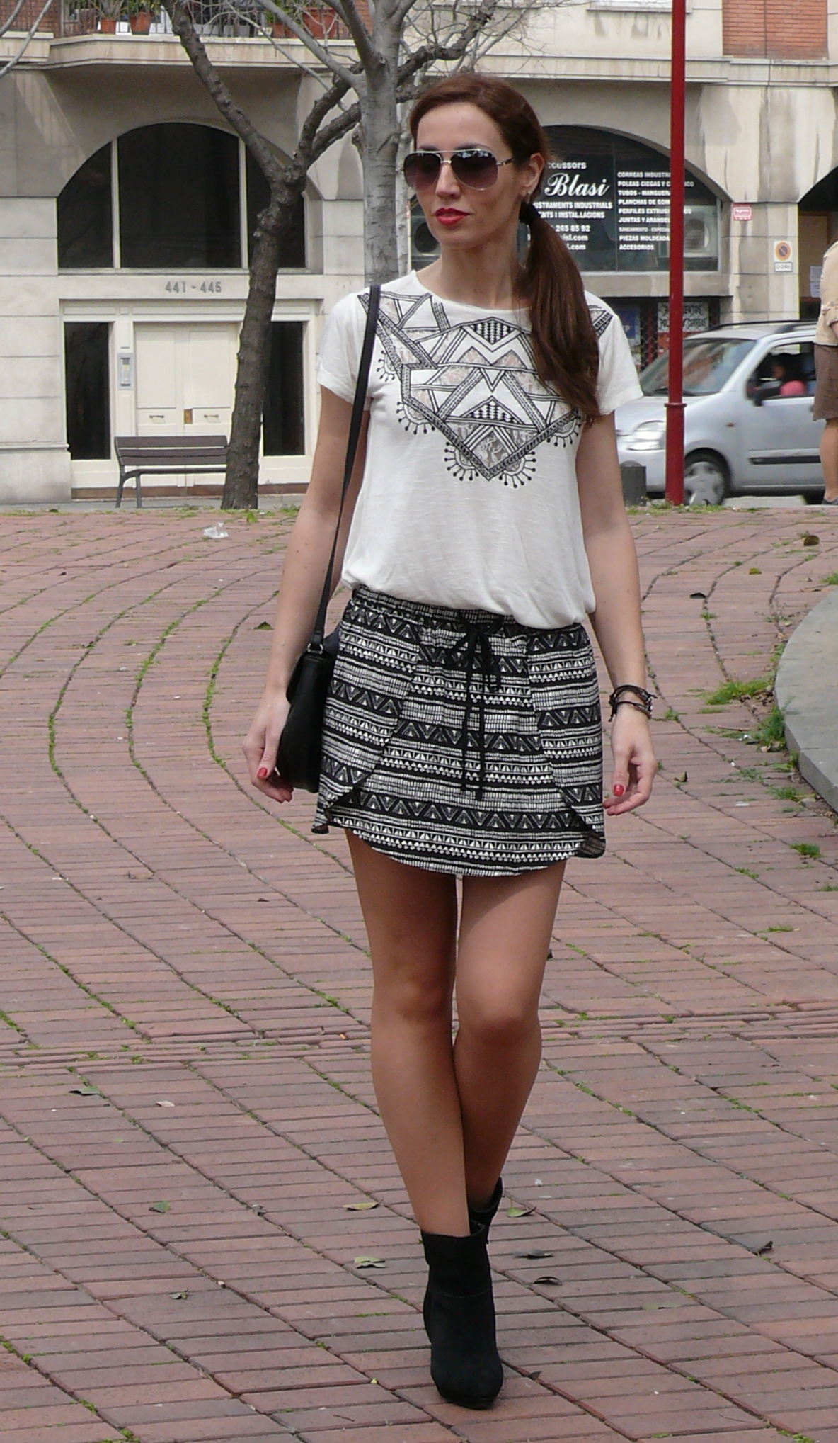 Siguiendo con otra tendencia de esta temporada, hoy os muestro un look que aparte de cumplir con el binomio black & white comentado en el post anterior, cumple con la tendencia de estampado étnico, tribal o geométrico. Aunque suele acompañarnos bastante a menudo durante el periodo estival, este año viene pisando más fuerte.
