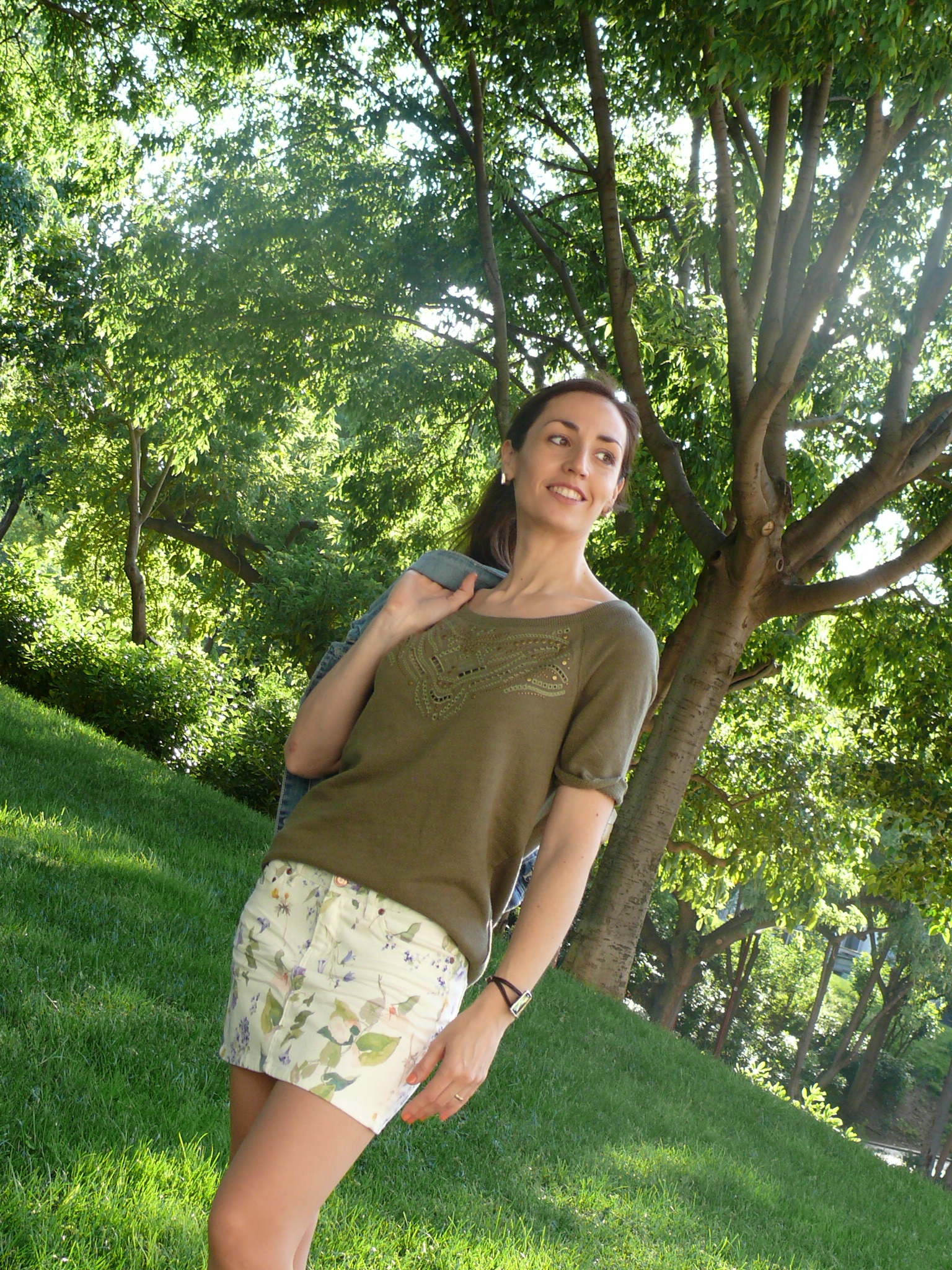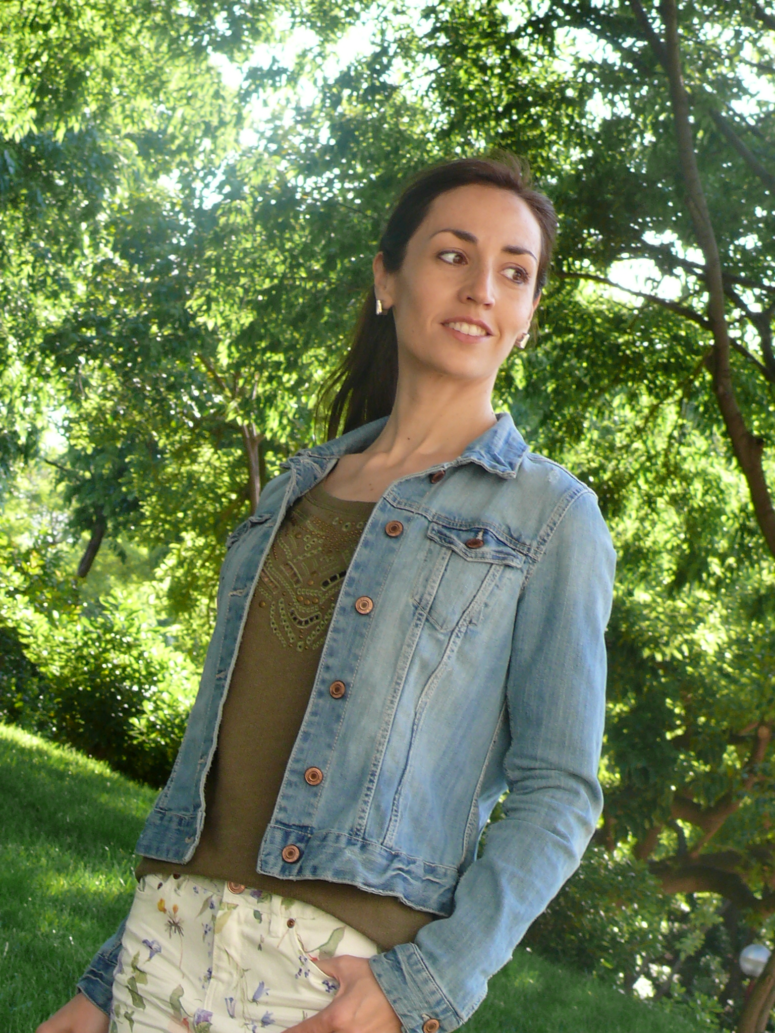 Falda de H&M Conscious (S/S 2013), jersey y cazadora vaquera de H&M (S/S 2013), gafas de Mango (S/S 2012), botines de Bershka (A/W 2012-13) y pulsera de Uno de 50.