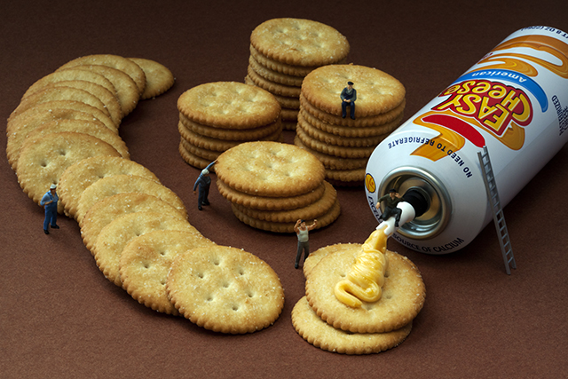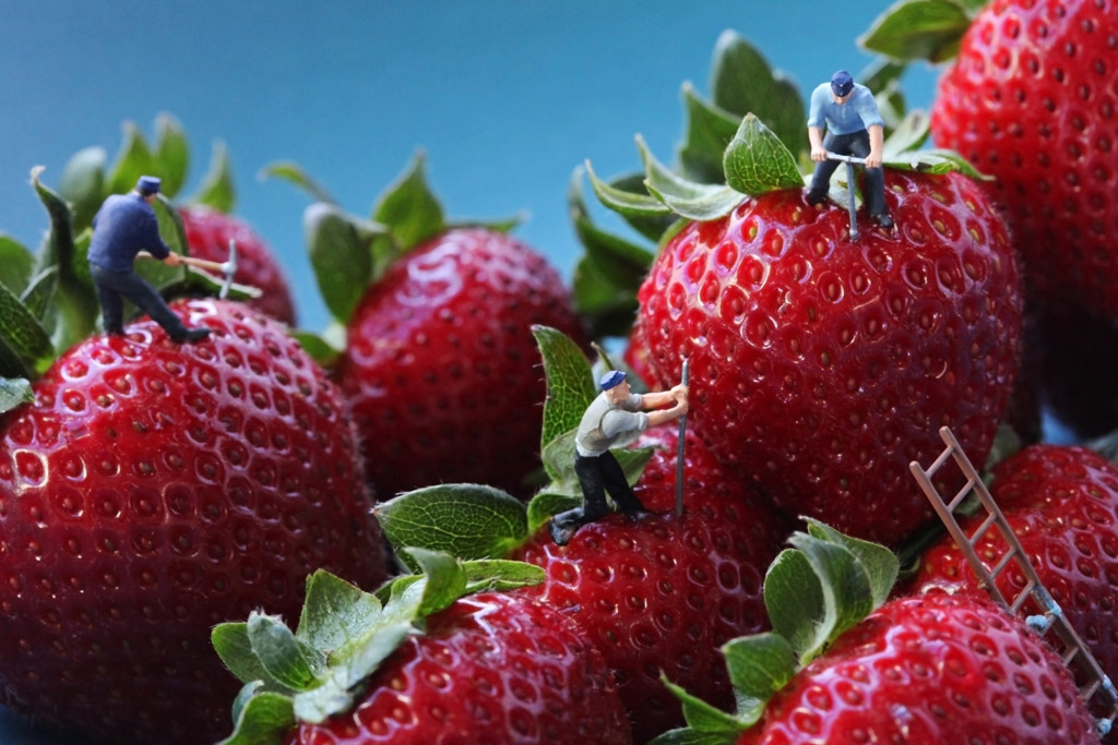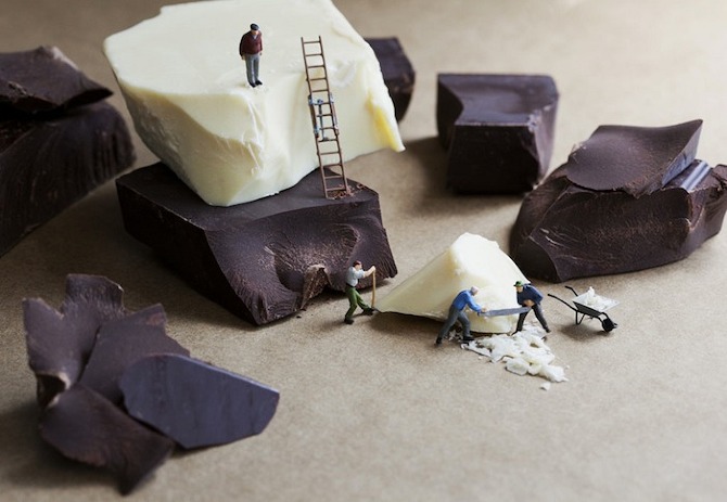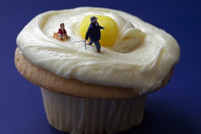 Como ya sabéis muchos de vosotros la fotografía forma parte de mis intereses y aficiones, así que hoy me apetecía compartir unas imágenes muy curiosas -al margen de la moda-. Leyendo el suplemento dominical Magazine, he descubierto al fotógrafo norteamericano Christopher Boffoli, muy popular en internet por mostrar en sus imágenes escenarios formados por figuras humanas muy diminutas (liliputienses de 2 cm de altura) y comida real a tamaño natural.