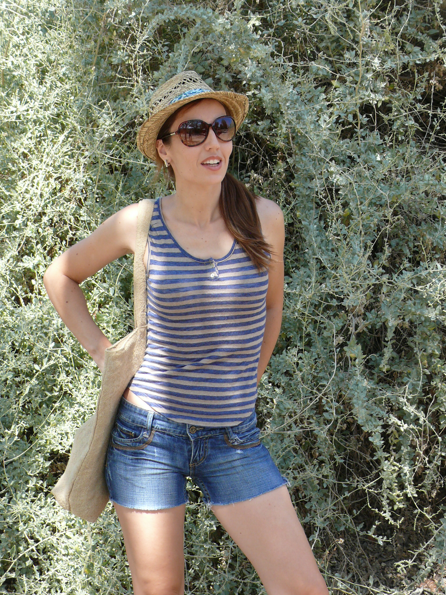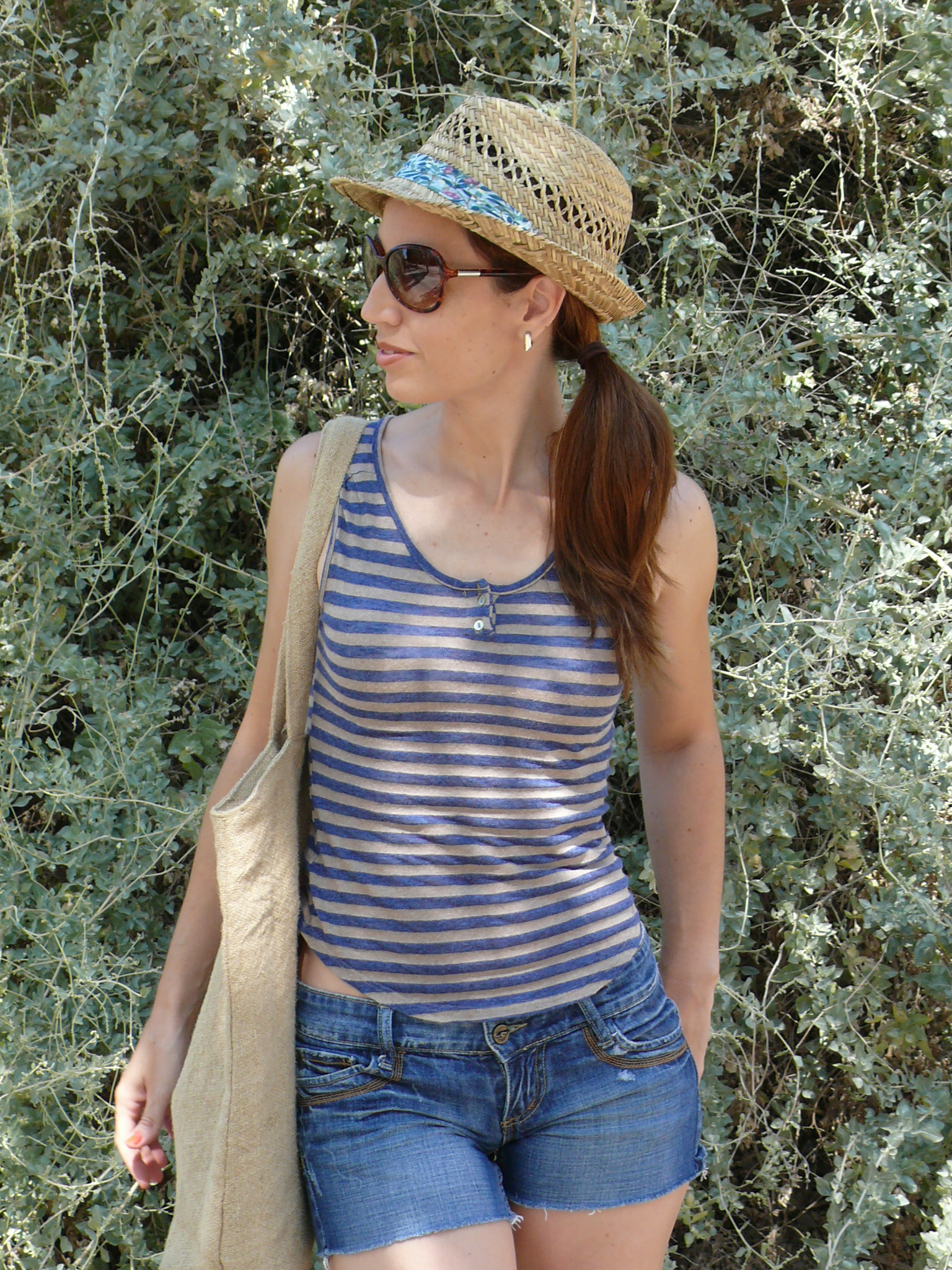 Llevo camiseta de Zara (old), shorts de Stradivarius (old), cuñas de Oysho (S/S’11), sombrero borsalino de Sfera (S/S’12) y bolso de ese o ese (S/S’13).
