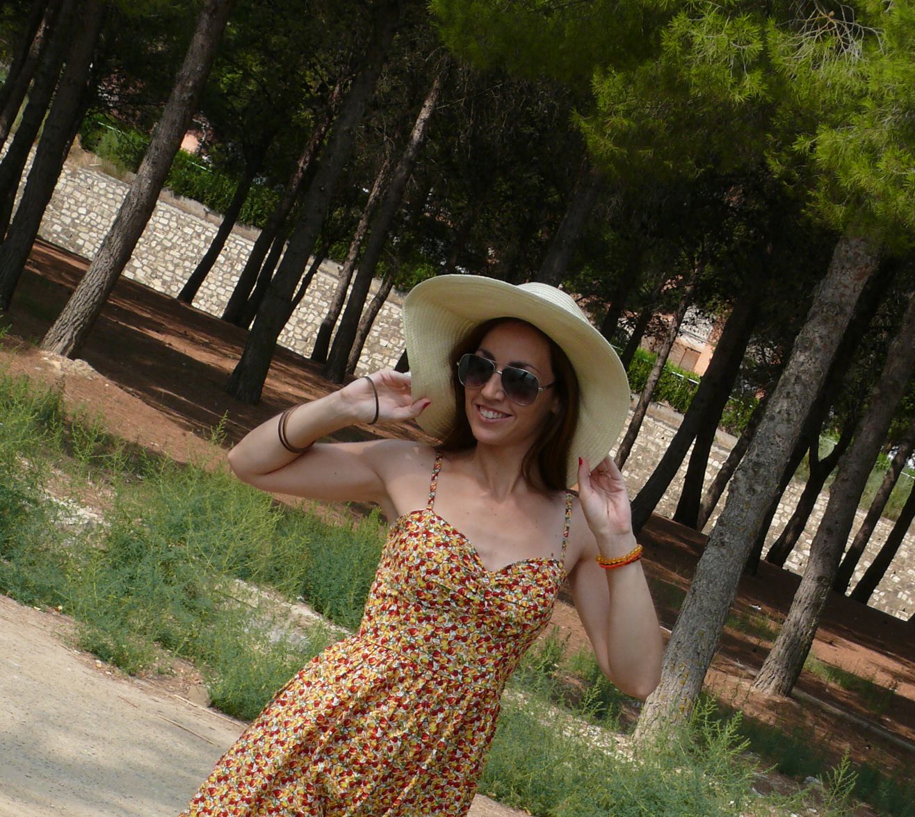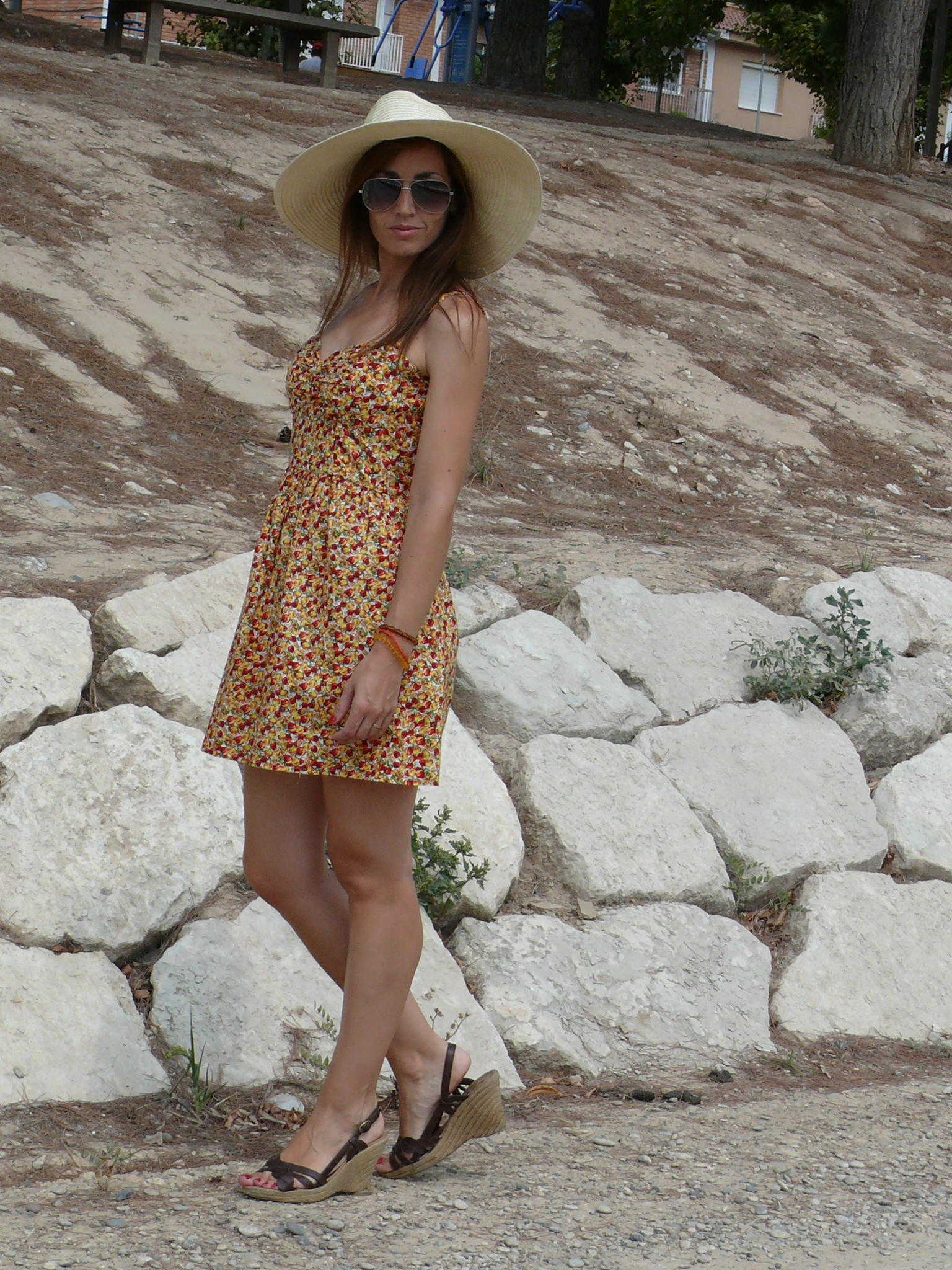 Hola!! Para empezar la semana, uno de los últimos looks veraniegos que me quedan por mostraros. Un vestido sencillo de estampado frutal, combinado con las sandalias de cuña que habéis visto ya unas cuantas veces y con un sombrero de rafia ideal para plantar cara a los rayos de sol del mediodía.