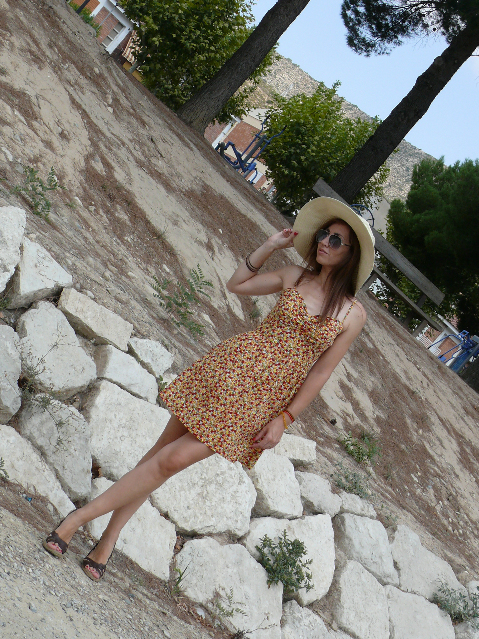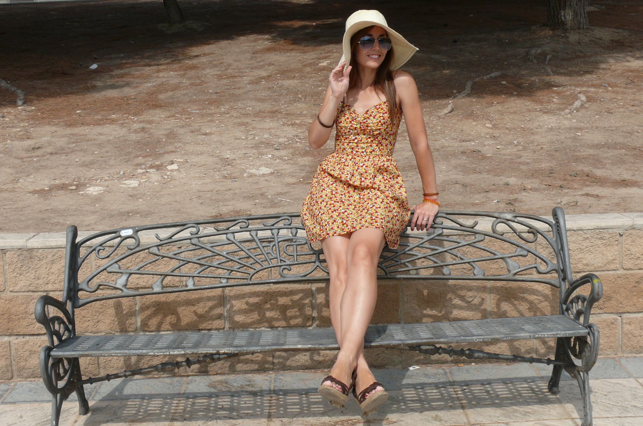 Vestido de Blanco (old), cuñas de Oysho (S/S’11), sombrero de Stradivarius (S/S’11), gafas de Mango (S/S’12) y pulseras de Natura (old).