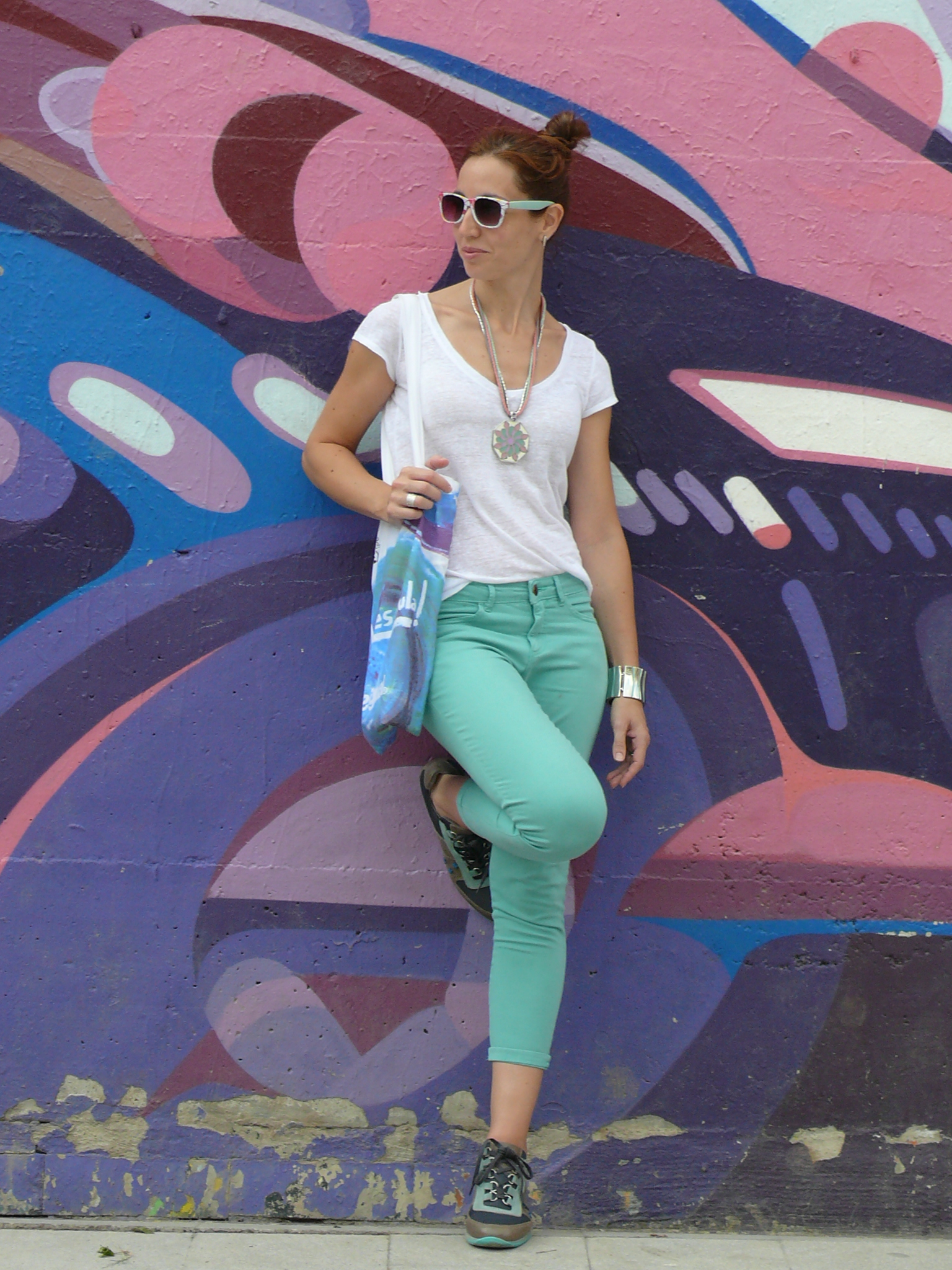 Hola!! Hoy un post rápido con un grafitti como protagonista de fondo de imágenes. No era la intención sacar fotos del look, pero me gustó el graffiti principalmente por sus colores y además pensé que todavía no había enseñado por el blog estas zapatillas de sport que tanto me gustan -las compré de Rebajas en Fosco este verano-.