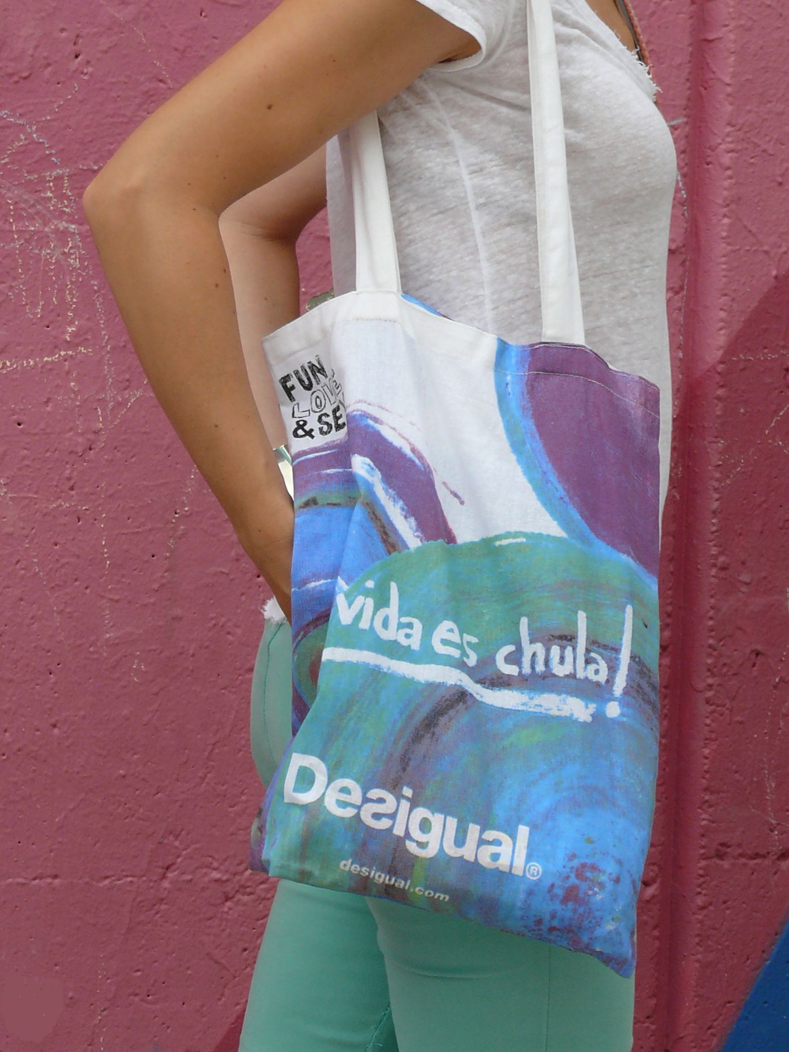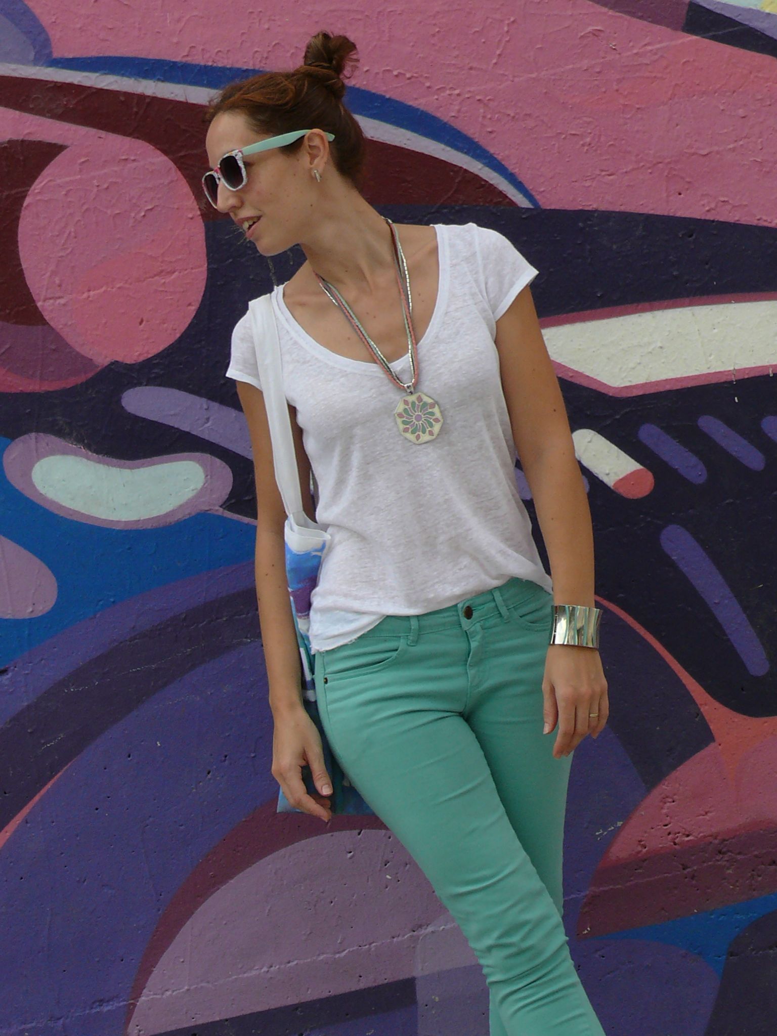 Pantalón de Springfield (S/S’13), camiseta de Inditex (S/S’12), collar de tienda local (S/S’13), bolsa de Desigual, zapatillas de Fosco (S/S’13), pulsera de Misako (S/S’13) y gafas de Topshop (S/S’13).