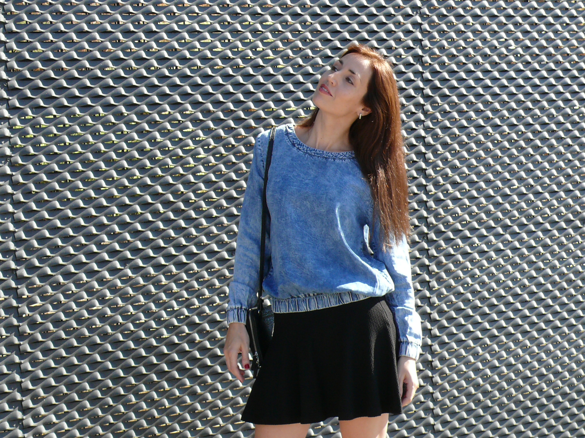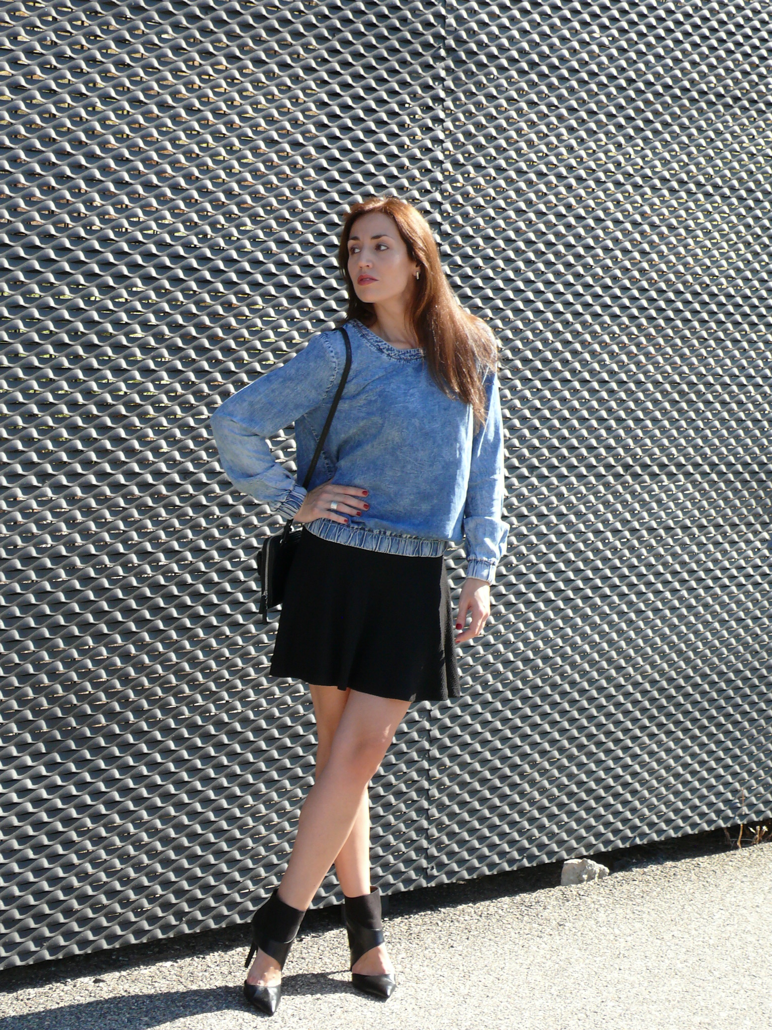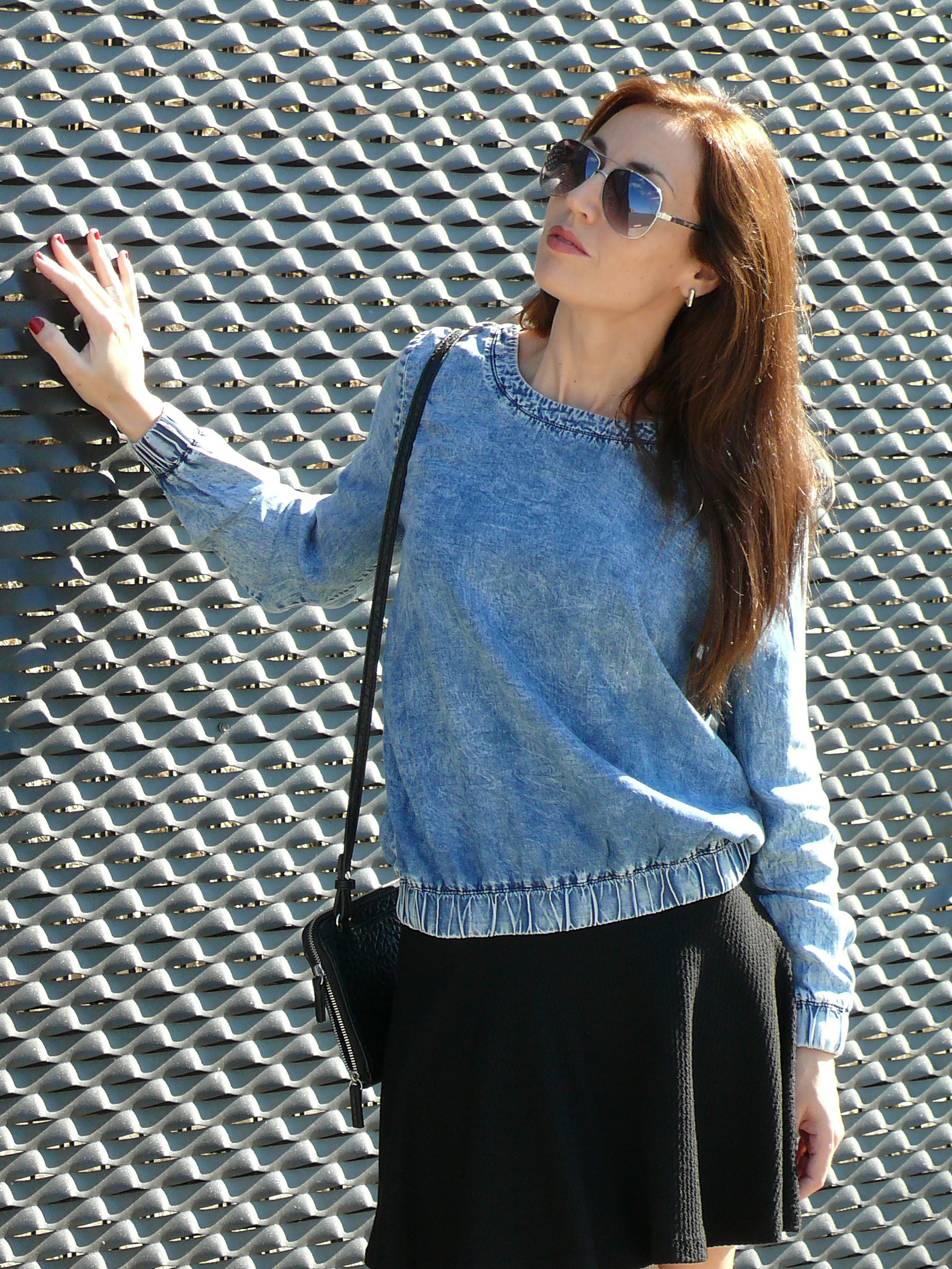 Hola!! Hoy os muestro más novedades de la nueva colección Otoño/Invierno 13-14. Los nuevos zapatos/botines que me encantan, la falda «skater» (otra de las tendencias de esta temporada), y la blusa/sudadera denim de efecto desgastado y retro.
