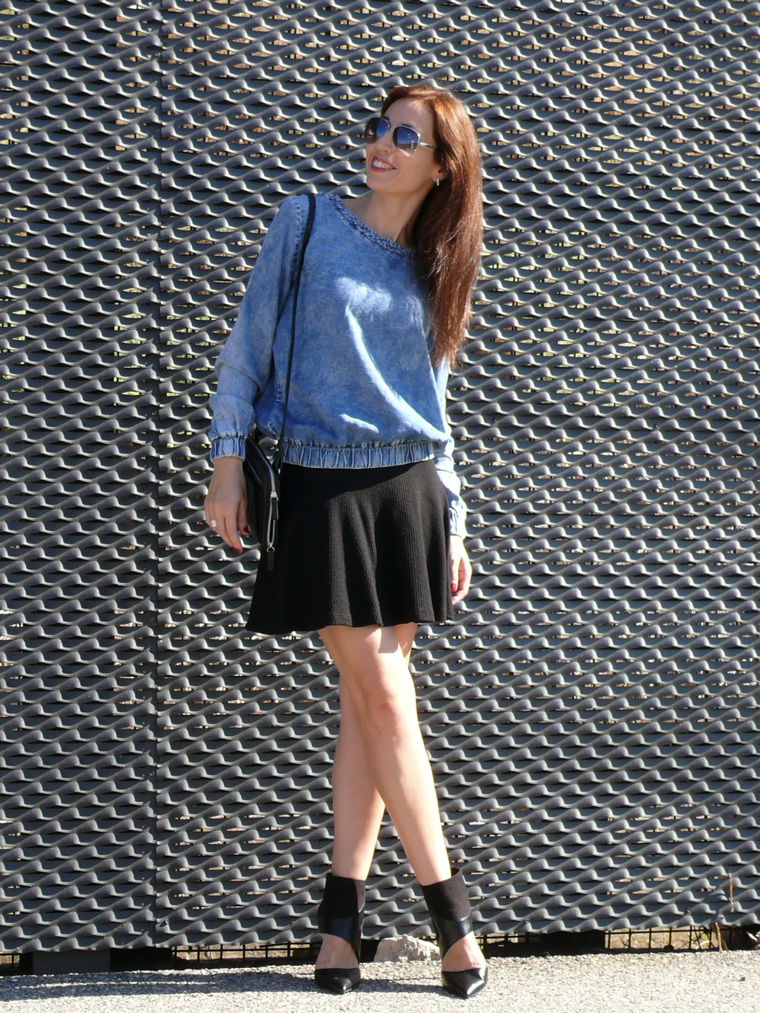 Botines y bolso de Zara (A/W’13-14), gafas de Mango (S/S’12), falda skater de Bershka (A/W’13-14) y blusa de Divided H&M (A/W’13-14).
