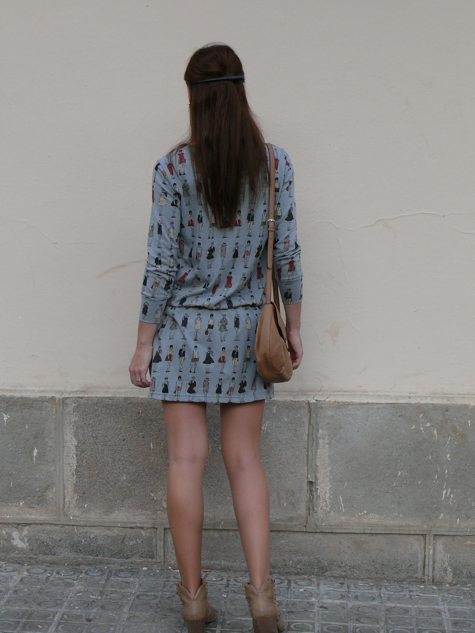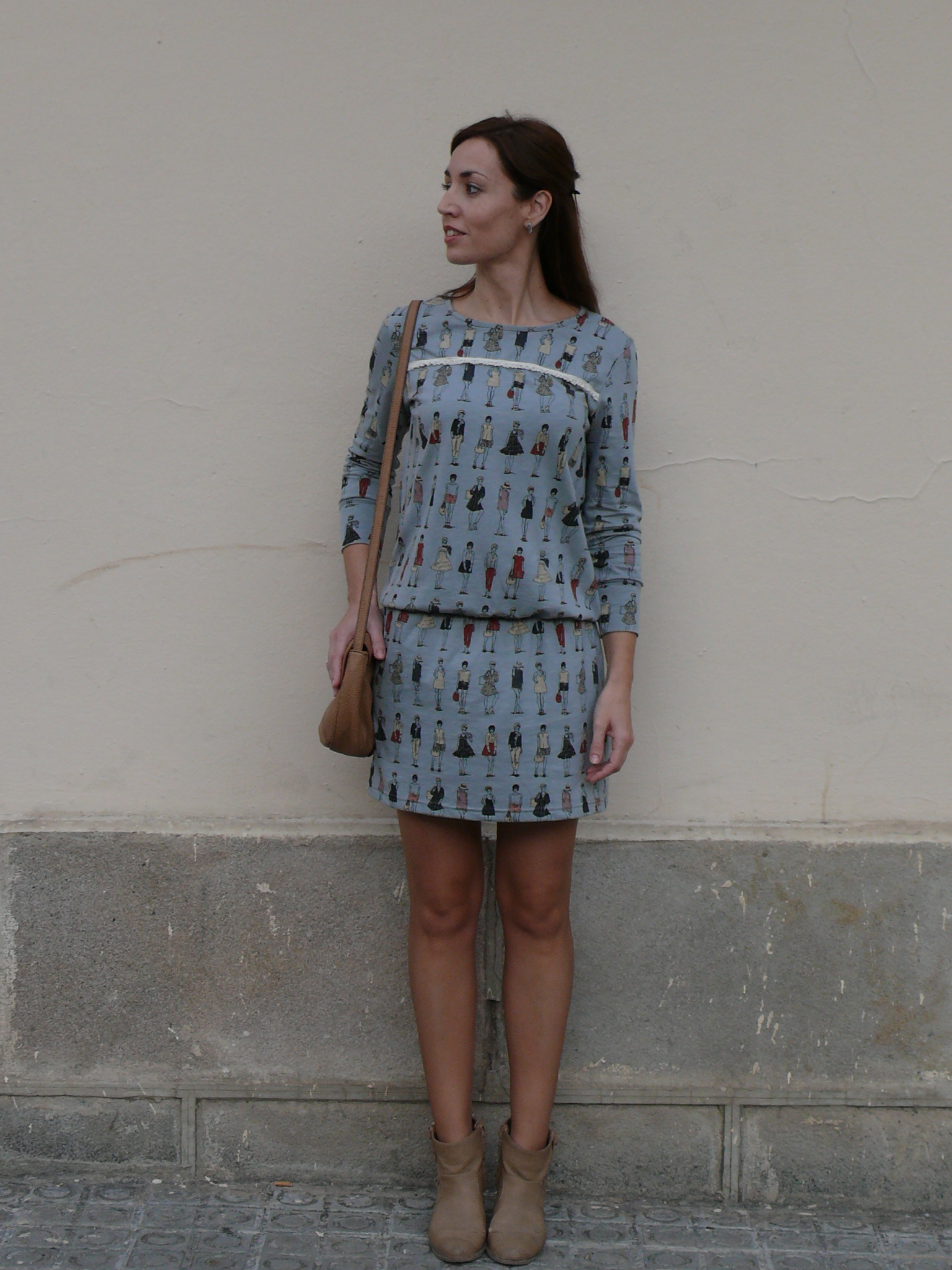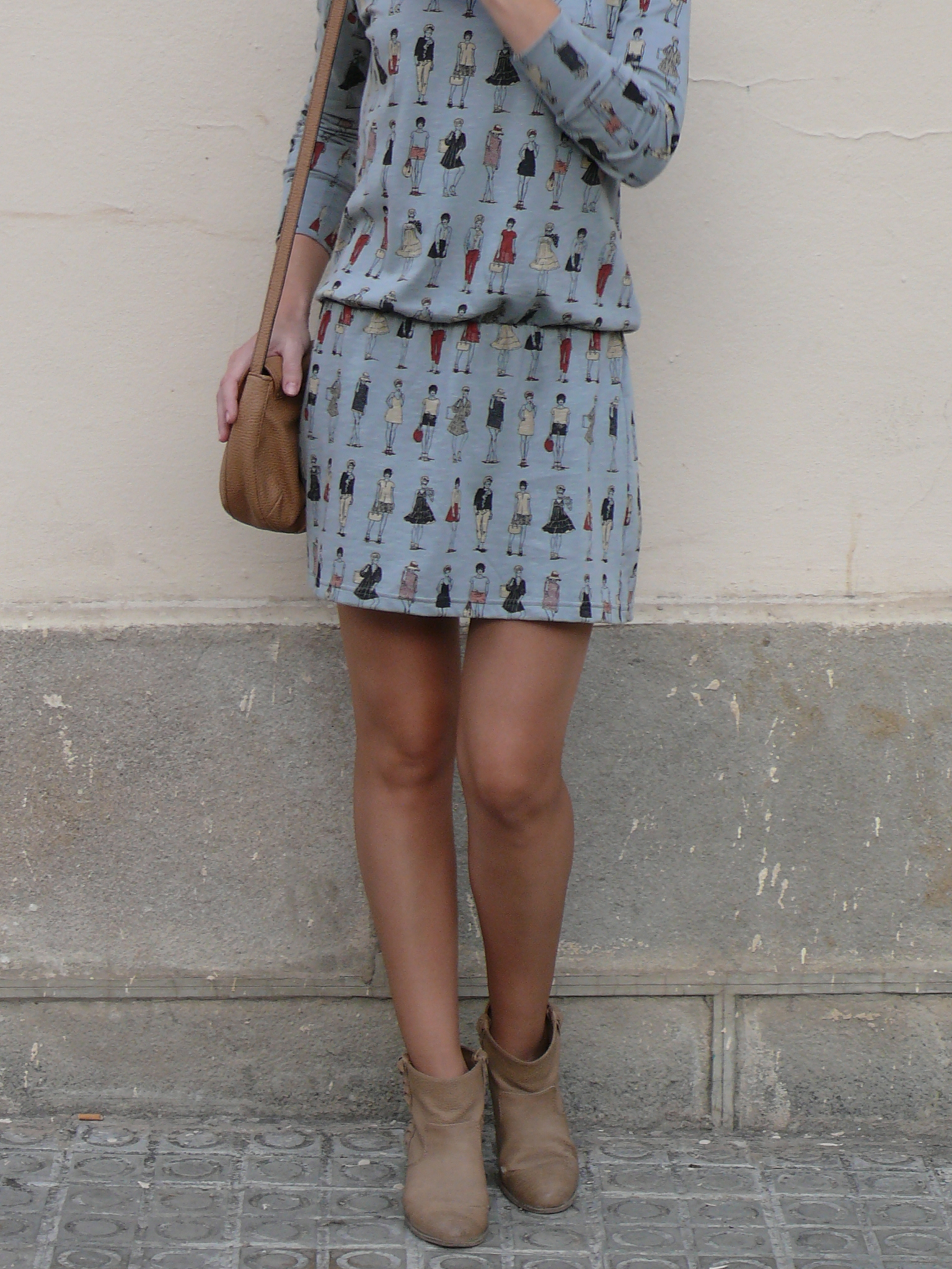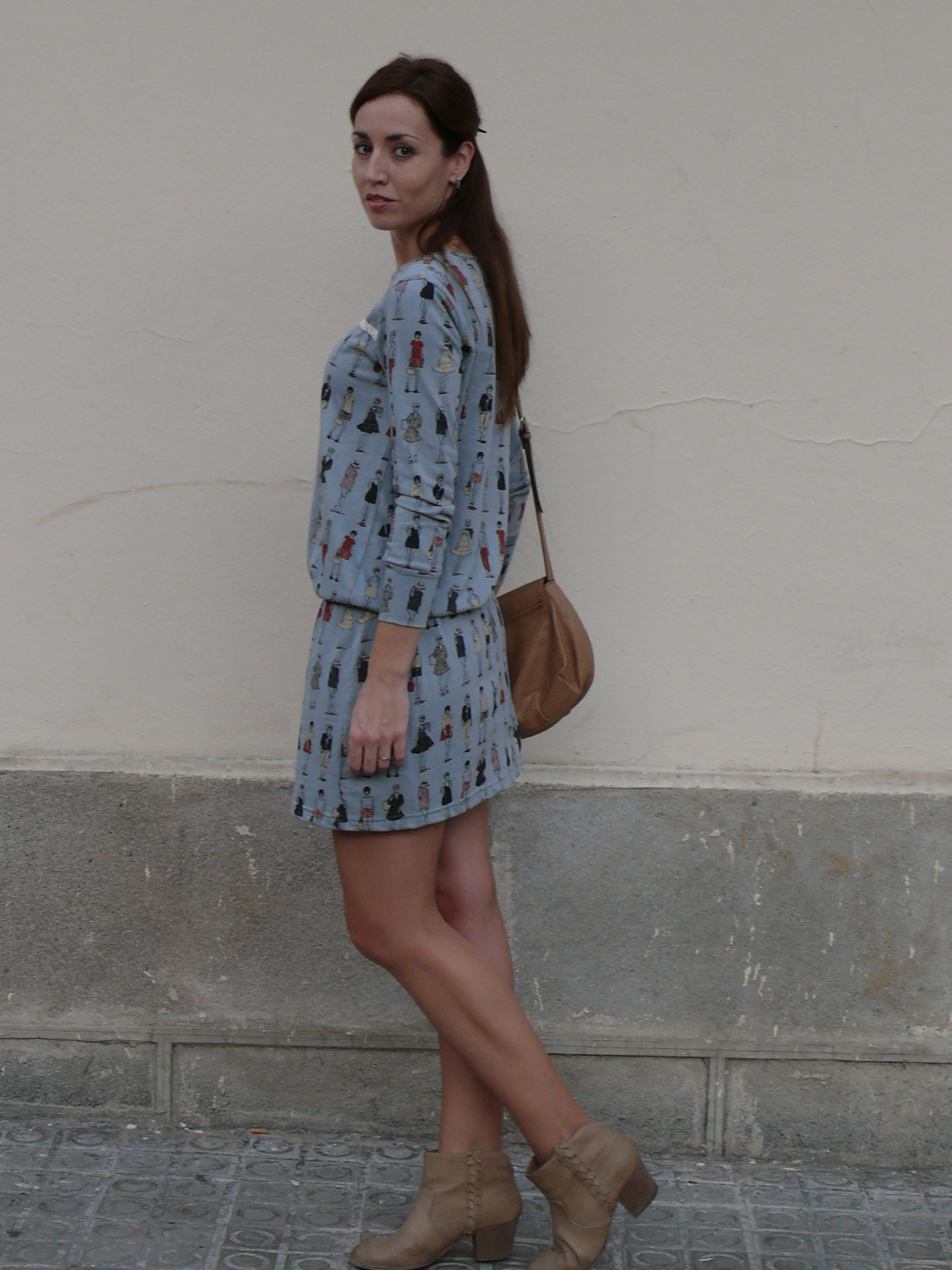 Hoy un look sencillo, con un vestido de la nueva colección de Dolores Promesas. Me encantó, aparte de por la forma, por el estampado de dibujitos fashion. Además, le veo muchas posibilidades con otros complementos -en colores granate y negro- y con más capas para cuando llegue el frío.