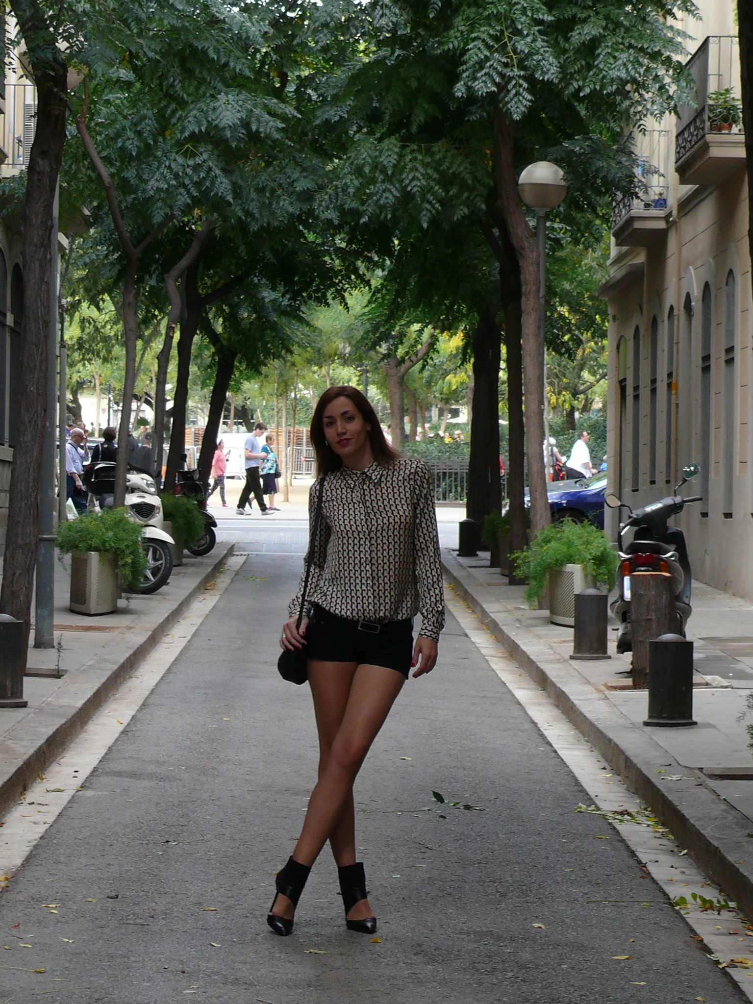 Hola!! En el post de hoy un look con la blusa que os mostré hace unas semanas en el post «Autumn’13«, en este caso combinada con unos shorts negros cortados por mí. Hacía mucho tiempo que estaban fuera de onda porque eran bastante anchos de la parte inferior y pensé que así les daría una segunda vida. No sé a vosotras, pero a mí, no es la primera vez que me ocurre que voy cortando y cortando, probando y cortando, y al final, casi me quedo sin shorts… 😉