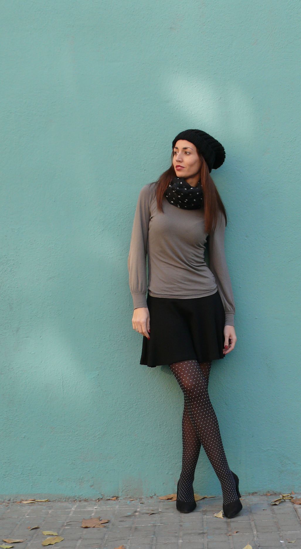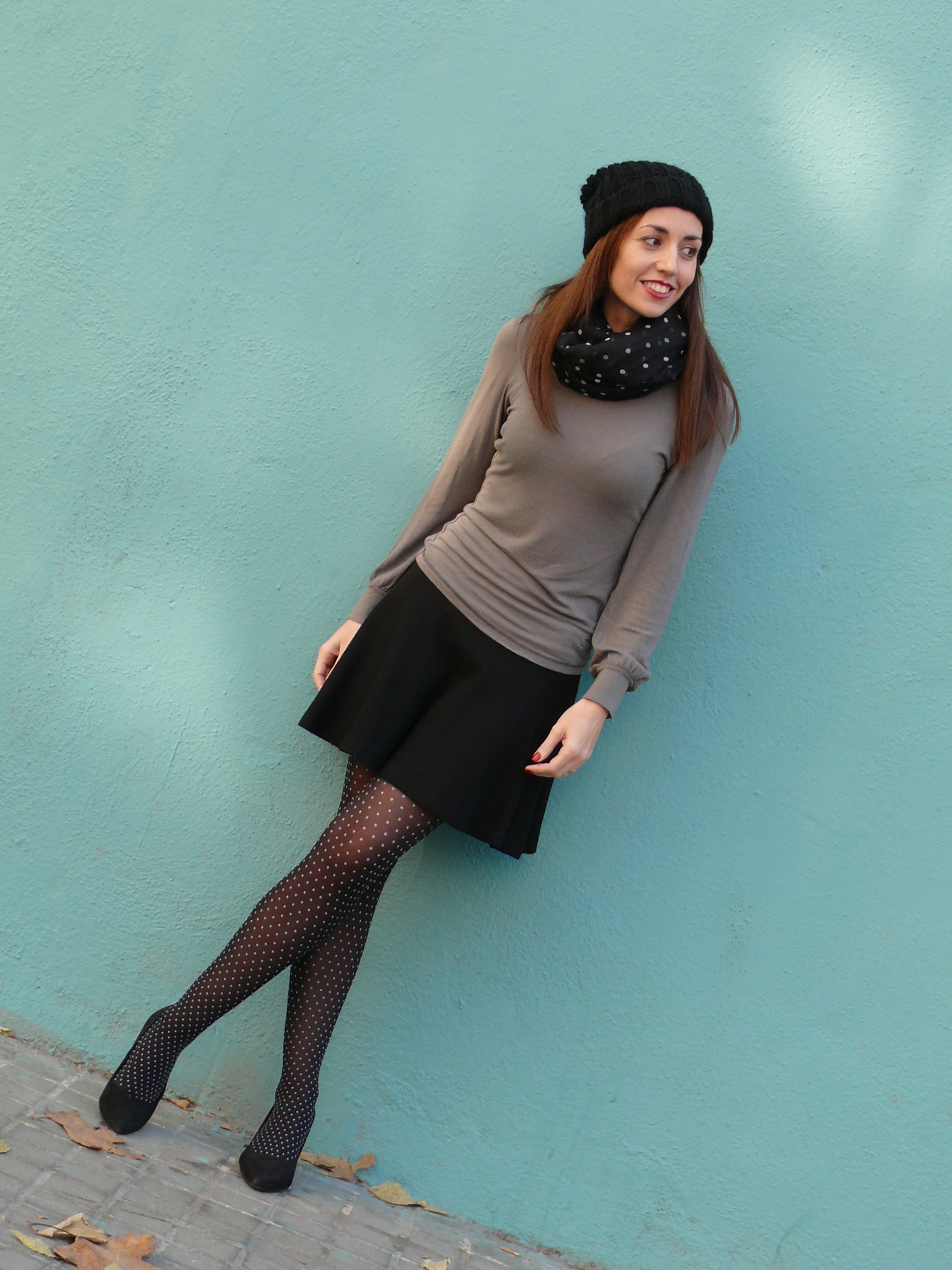 Look: Jersey de Pepe Jeans (old), falda de Bershka (A/W’13-14), medias de Zara, y pañuelo y beanie de Stradivarius (A/W’13-14).