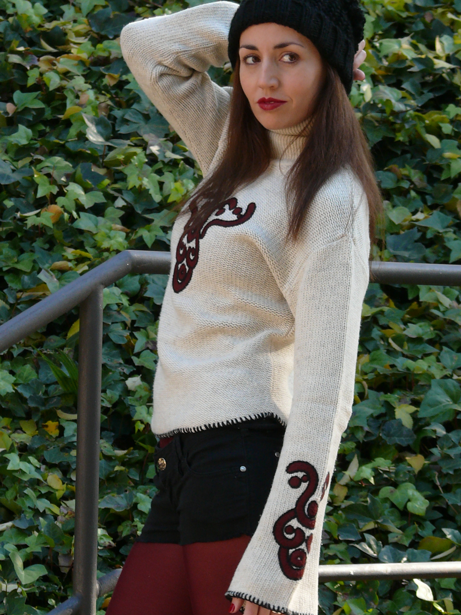 Llevo jersey de Liberto, shorts de Pull & Bear (old), medias de Calzedonia, zapatos de Zara (A/W 13-14), gorro de Stradivarius (A/W 13-14) y bolso de Nice Things (old).