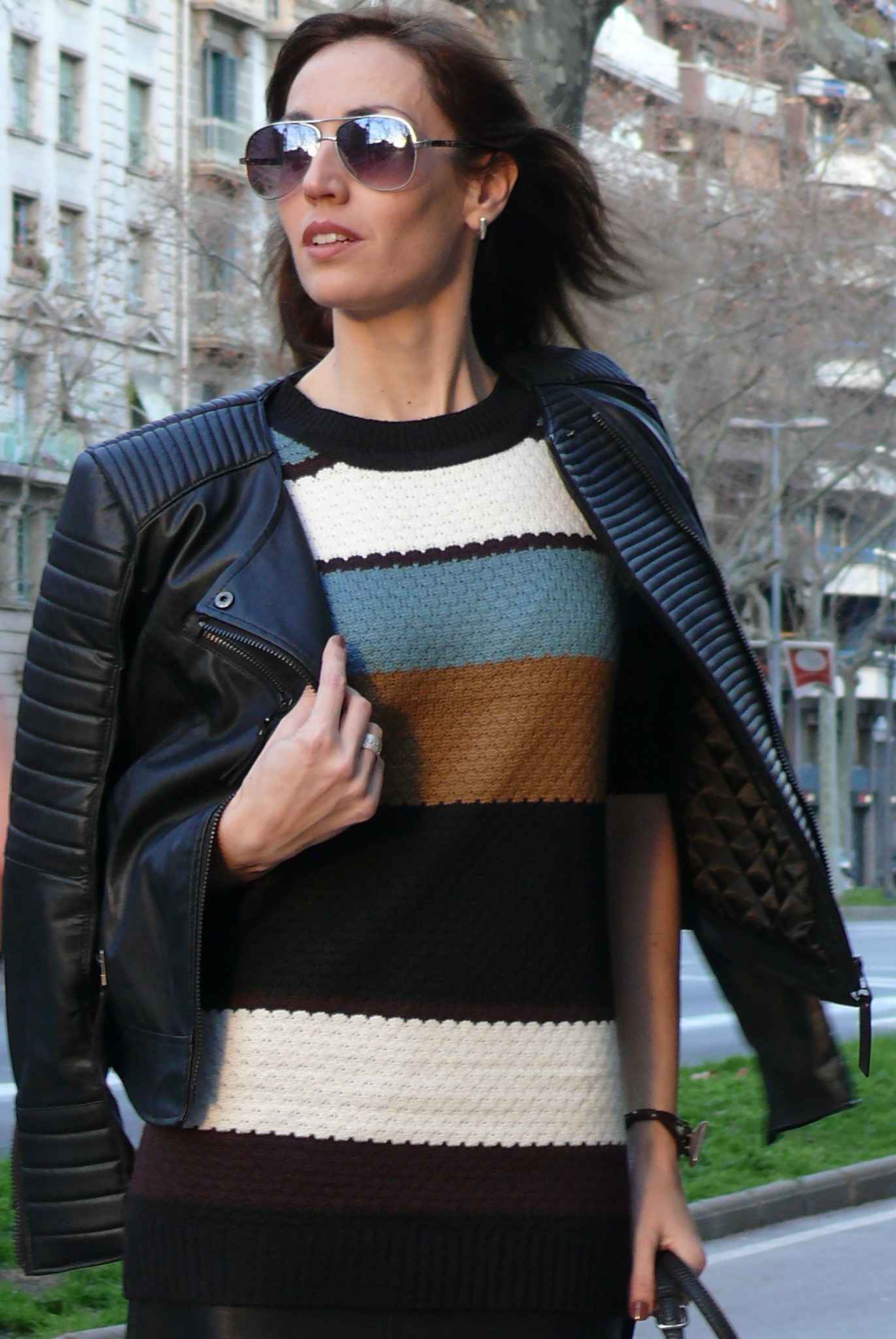 Llevo jersey de Kling, falda de Zara, cazadora, bolso y gafas de Mango (old) y botines de Stradivarius.