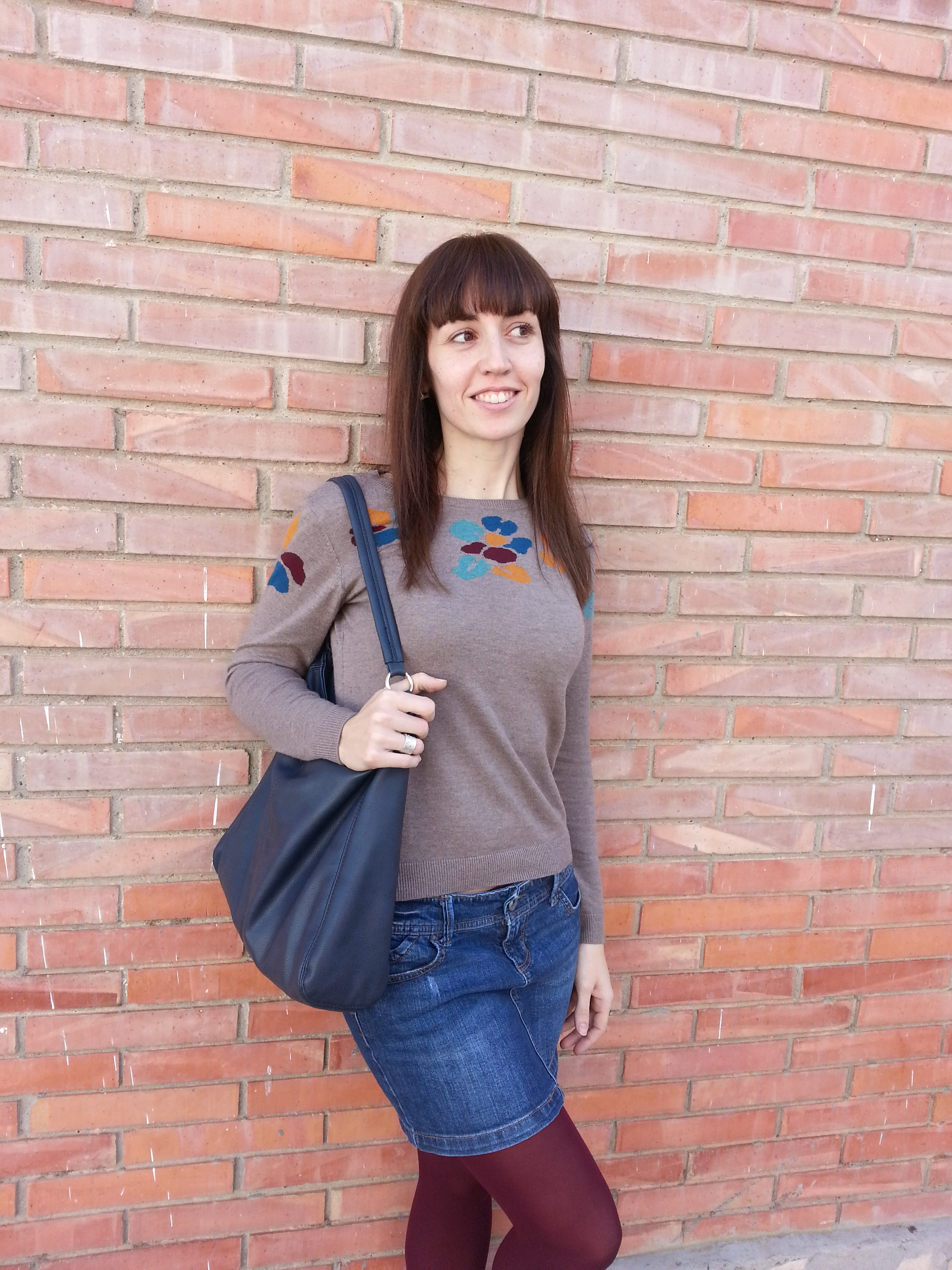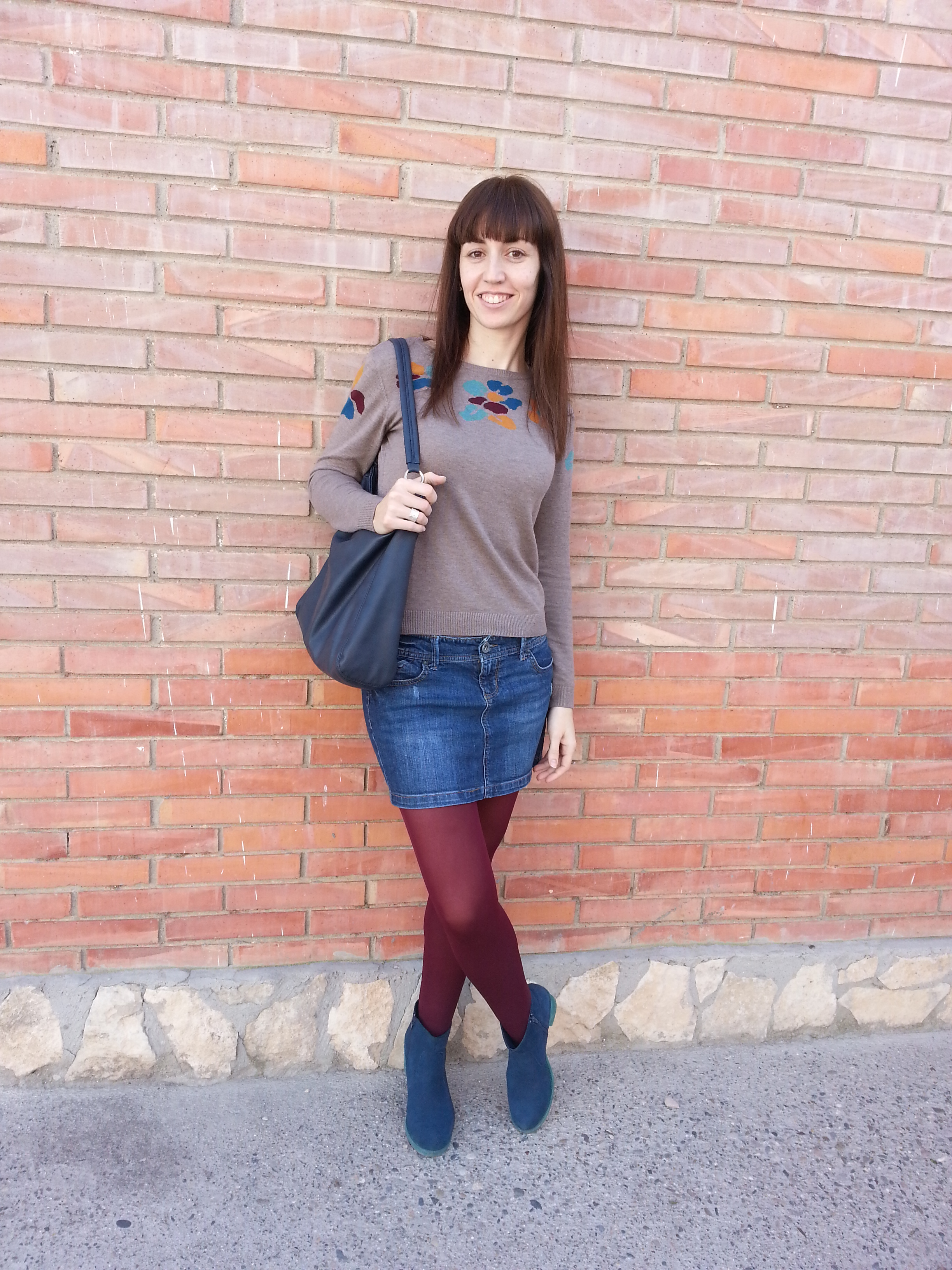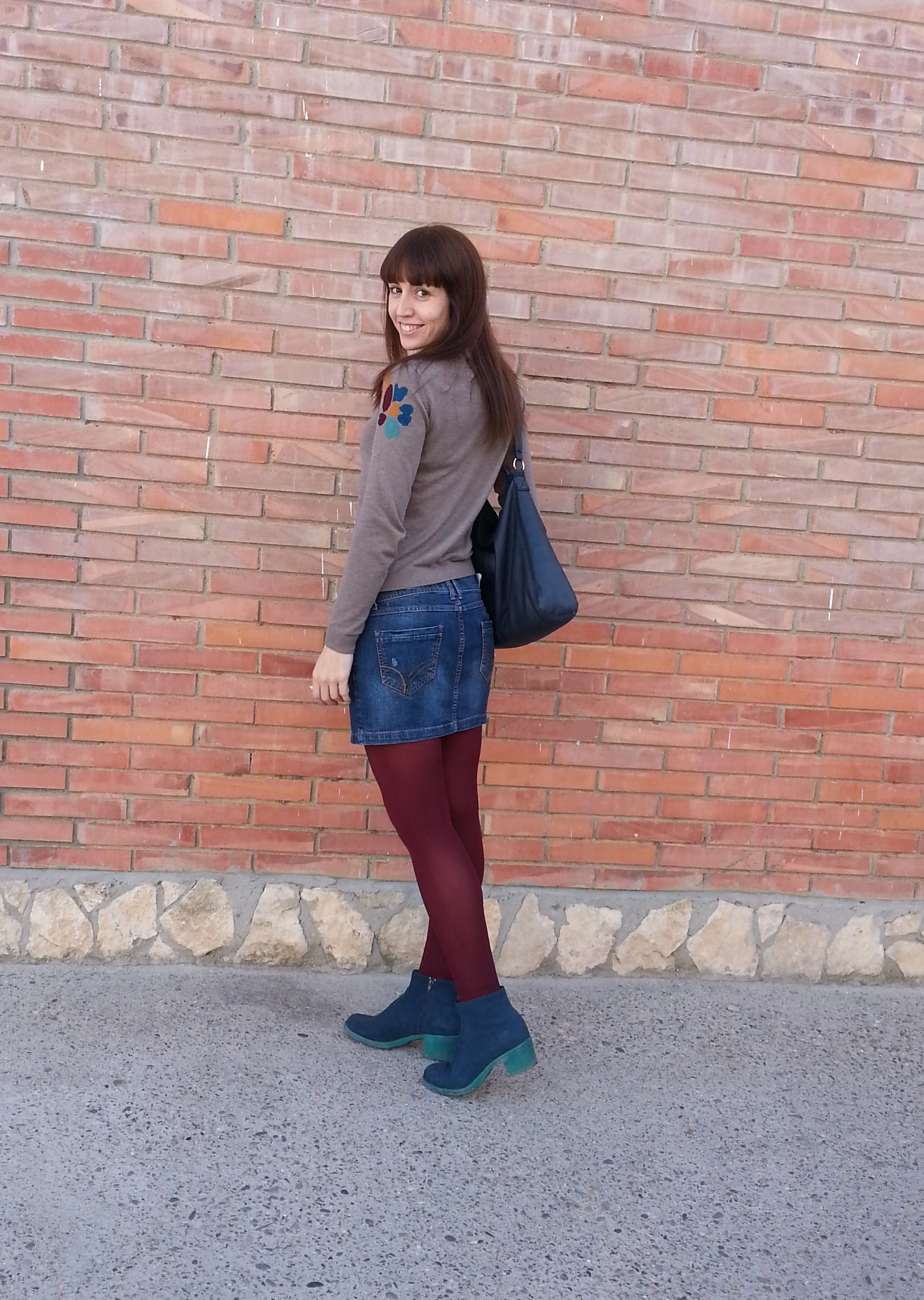Llevo jersey y botines de Nice Things, falda y bolso de STR y medias de Calzedonia.