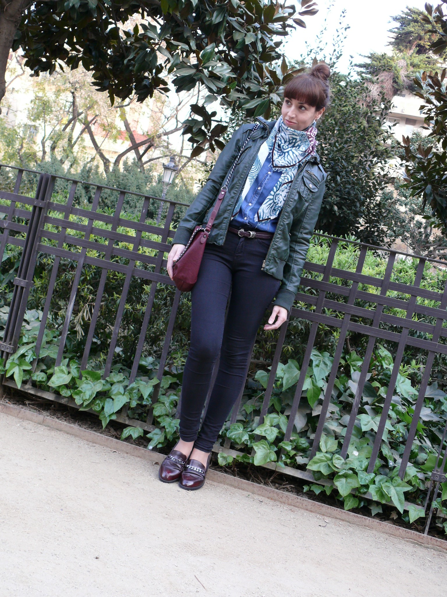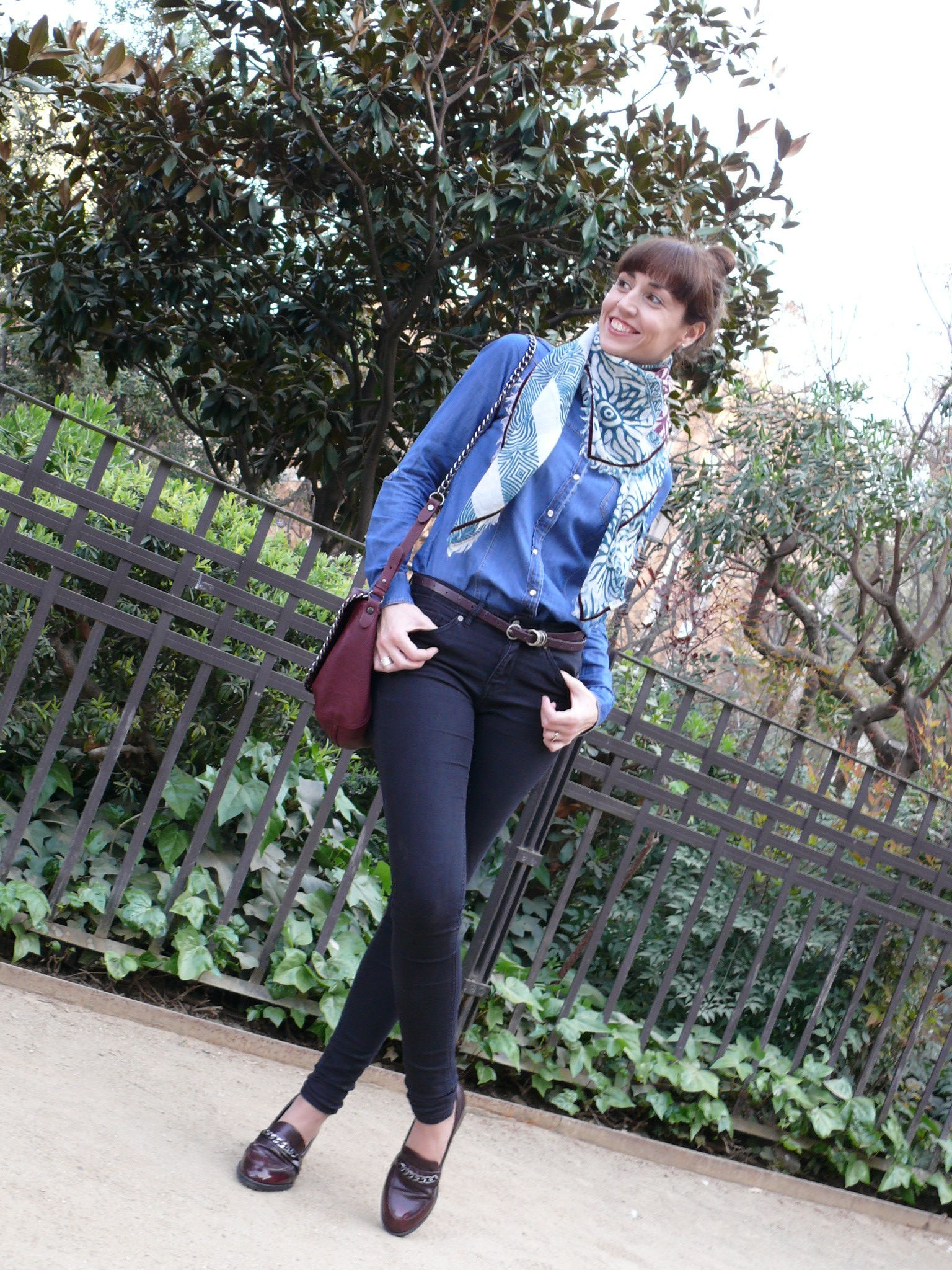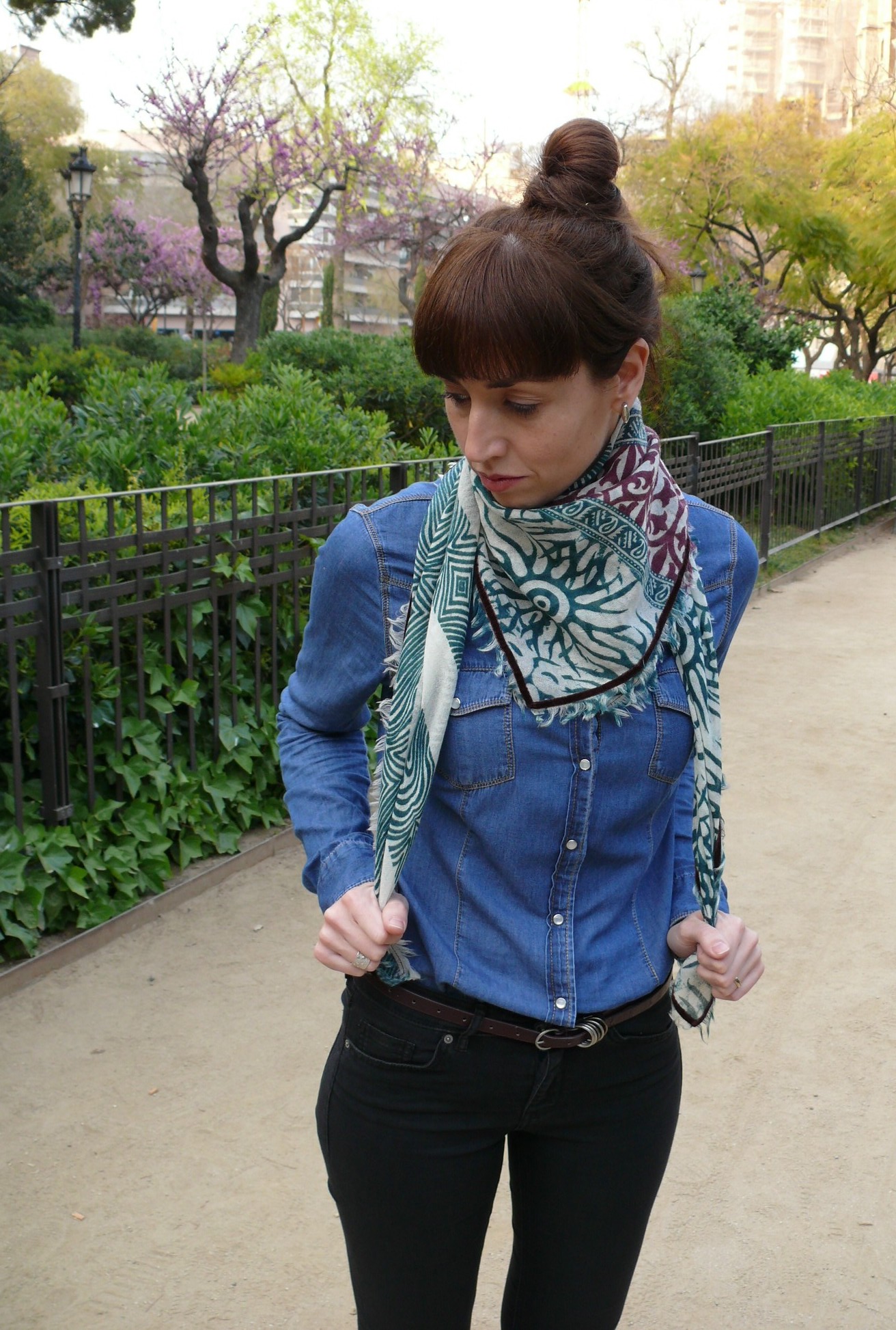 Look: pañuelo de ese o ese, pantalón de h&m, cinturón y cazadora de Inditex (old), camisa denim y zapatos de STR y bolso de Mango.