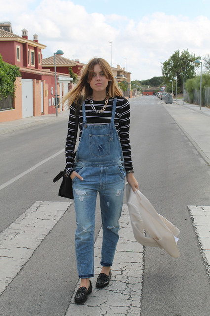 Hay que vigilar, porqué según cómo los combinemos pueden resultar un tanto «granjeros». Aquí va una selección de looks con posibles combis, por si os siguen gustando y os lanzáis a llevarlos de nuevo. Como podréis observar en las imágenes, predominan con camisetas de rayas.