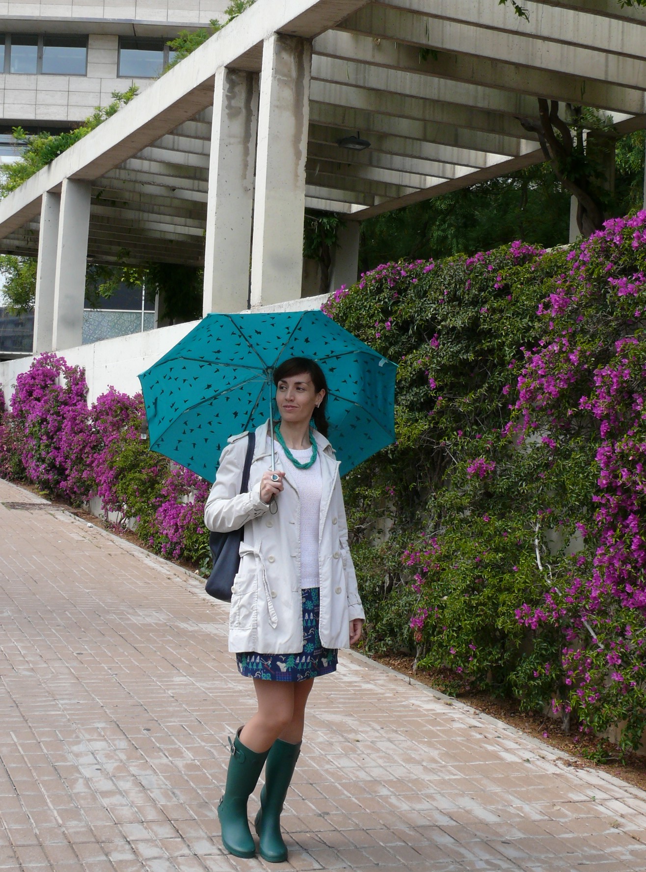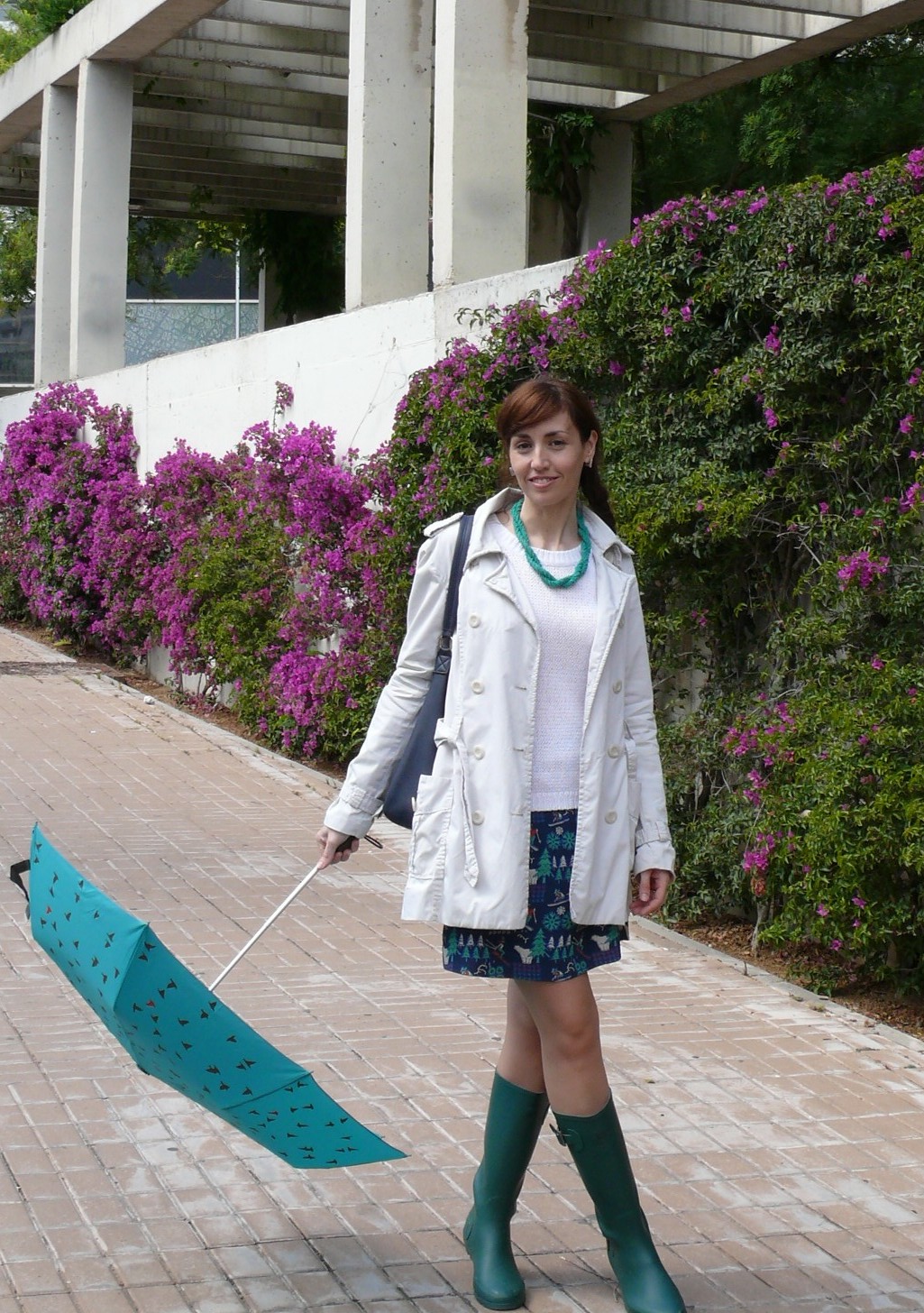 ¡Hola!! Después de tantos días lluviosos no queda más remedio que sacar un look de día gris y lluvioso, con botas de agua y paraguas. Es una mezcla de prendas de invierno y primavera; ya tenía más o menos zanjado el cambio de temporada en el armario pero últimamente tengo que desmontarlo de nuevo.