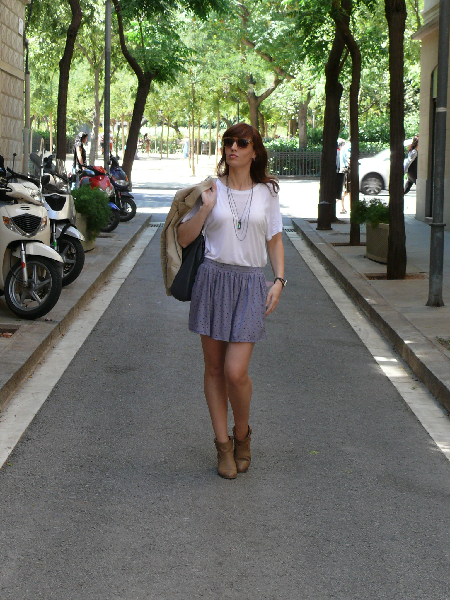 Look: Blazer/americana de Mango (S/S 12), falda de Double Agent (S/S 14), camiseta de Zara (A/W 13-14), botines de Bershka (A/W 12-13), bolso de Stradivarius (S/S 13), collar de Uno de 50 (old) y gafas de Topshop (S/S 14).
