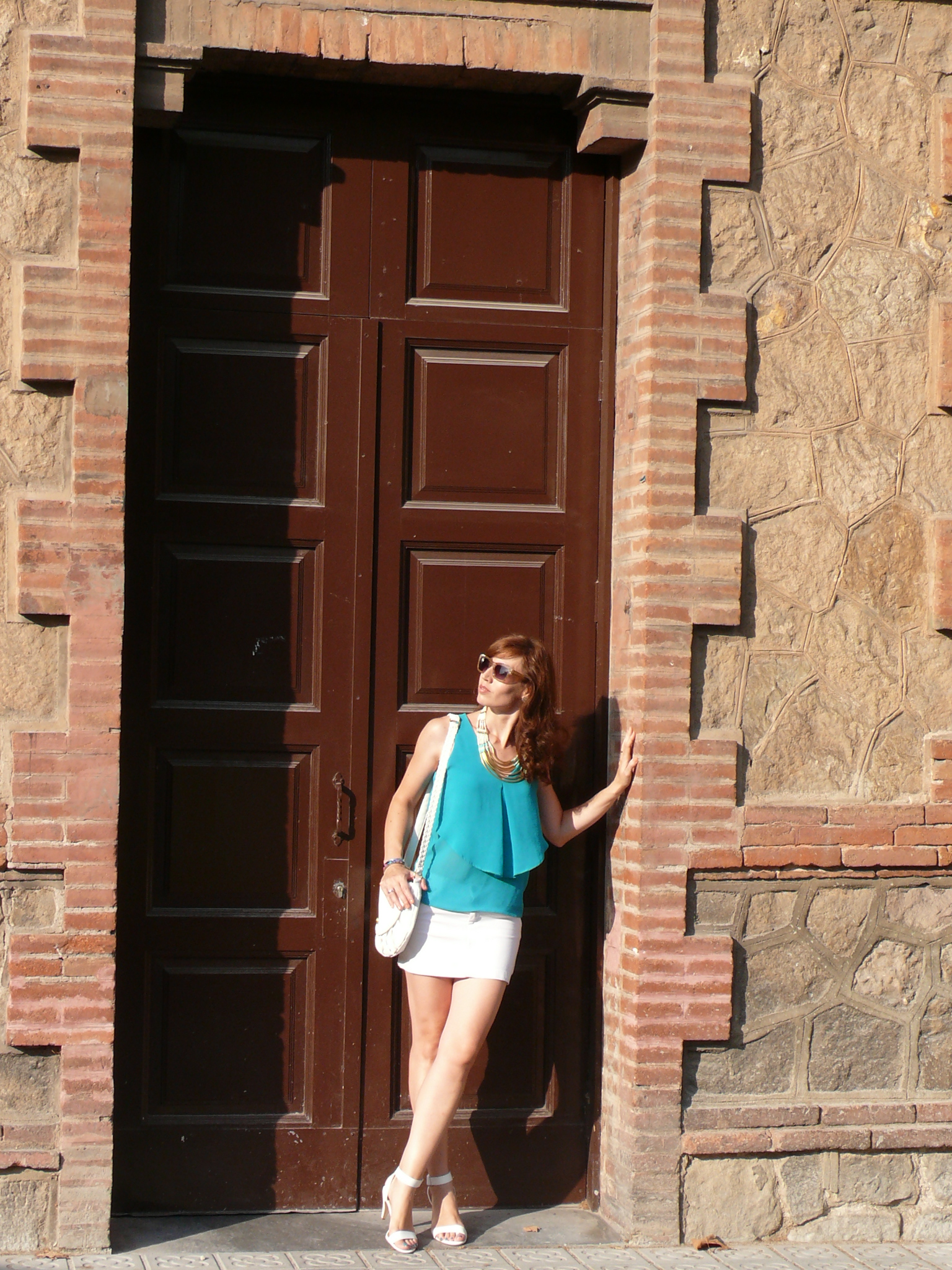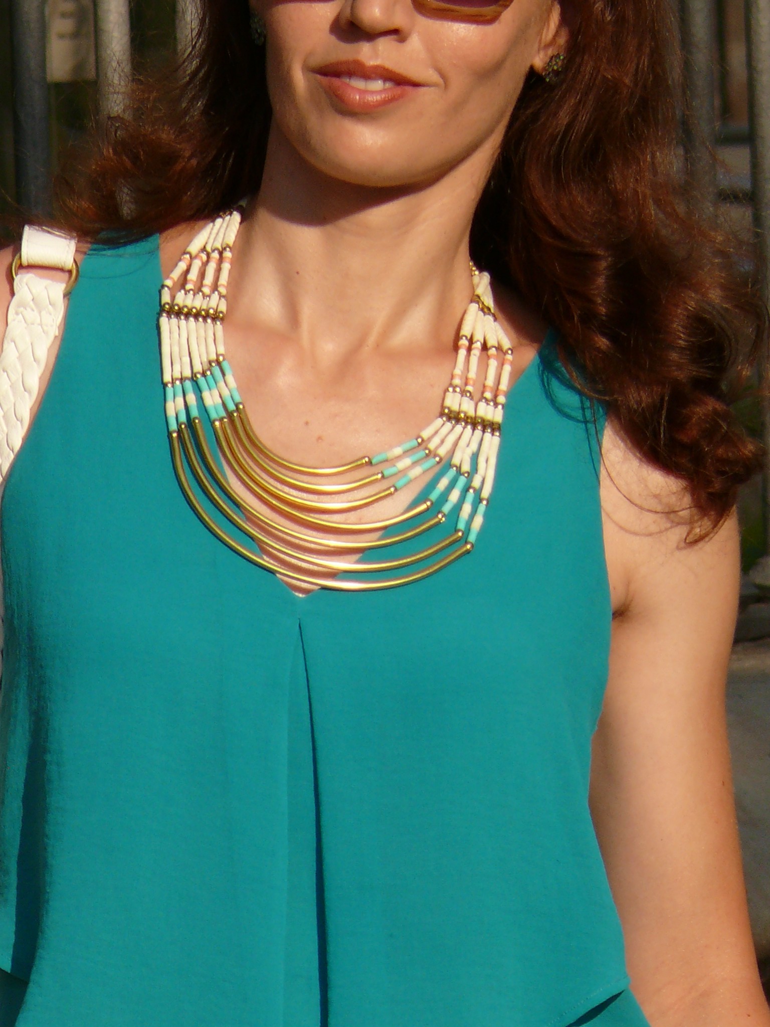 ¡Hola!! Empezamos la semana con un look muy blanquito, de estos típicos veraniegos que aportan luminosidad y frescura. El blanco queda genial con la mayoría de colores y si estás morena (que no es el caso) ya es la bomba… 😉 Hoy lo he combinado con este top turquesa y con complementos que ya se han dejado ver por el blog.