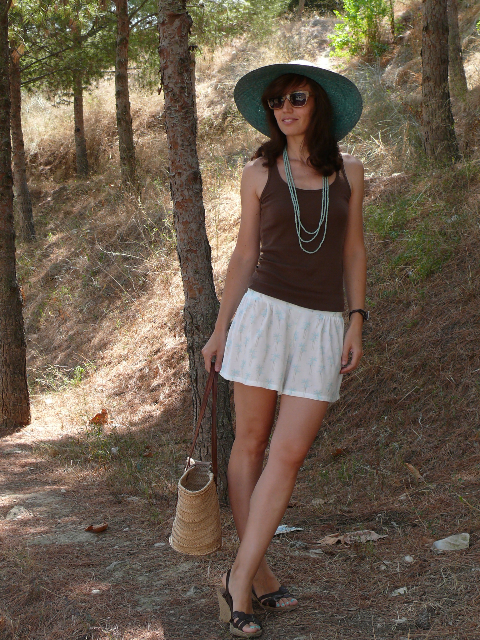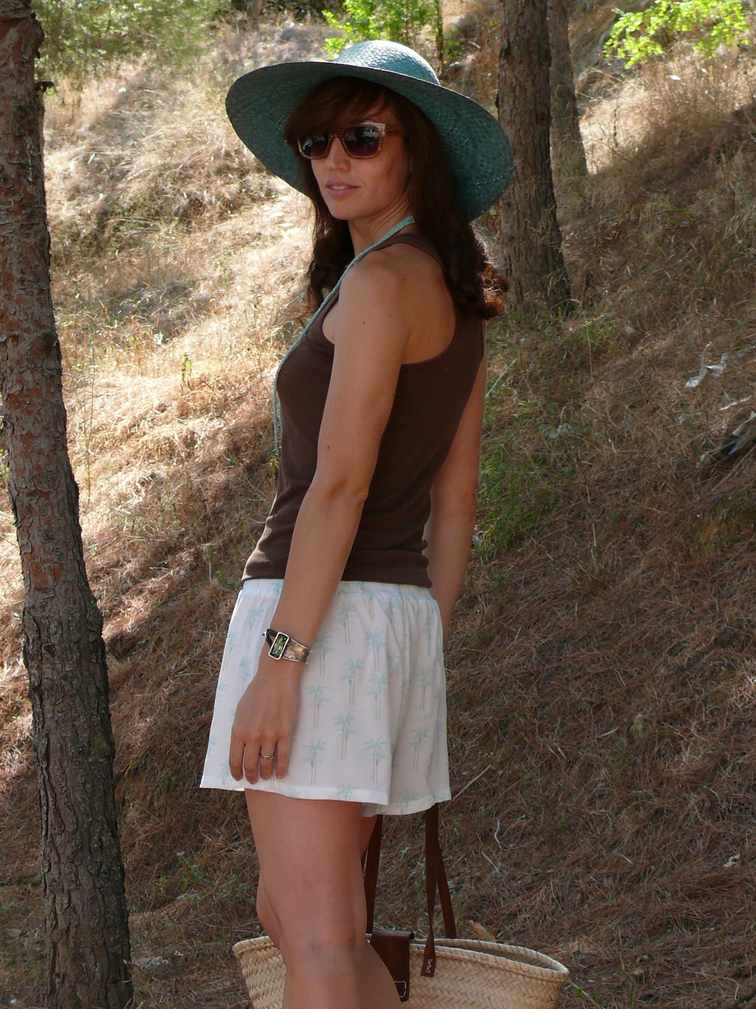 El print de palmeras muy sutil de la parte inferior y una combinación muy típica en mí (marrón con el verde agua marina que tanto me gusta) completan el outfit! 😉