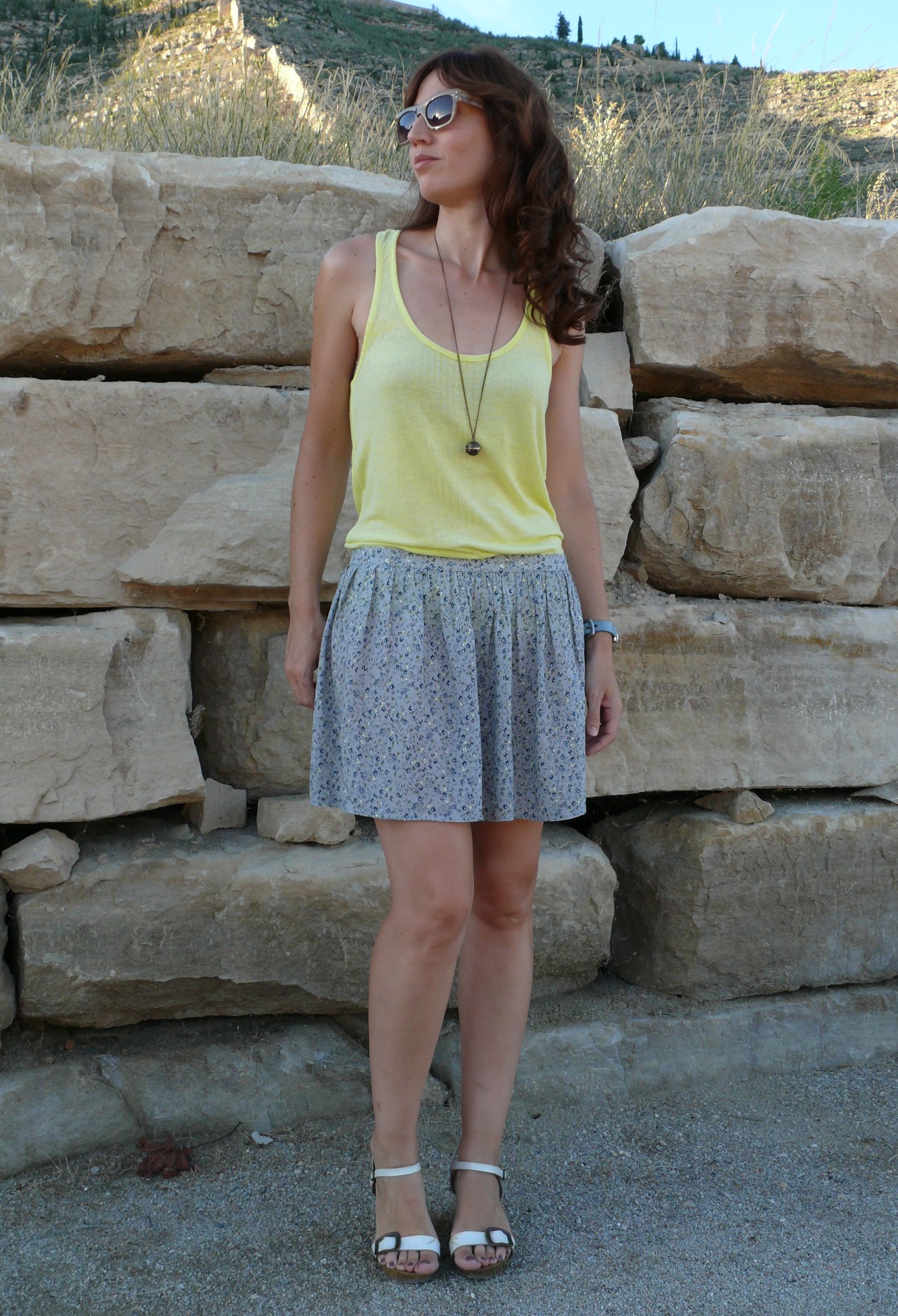 Repito estilo de outfit: falda estampada de flores, camiseta básica y las sandalias que habéis visto mil veces por el blog.