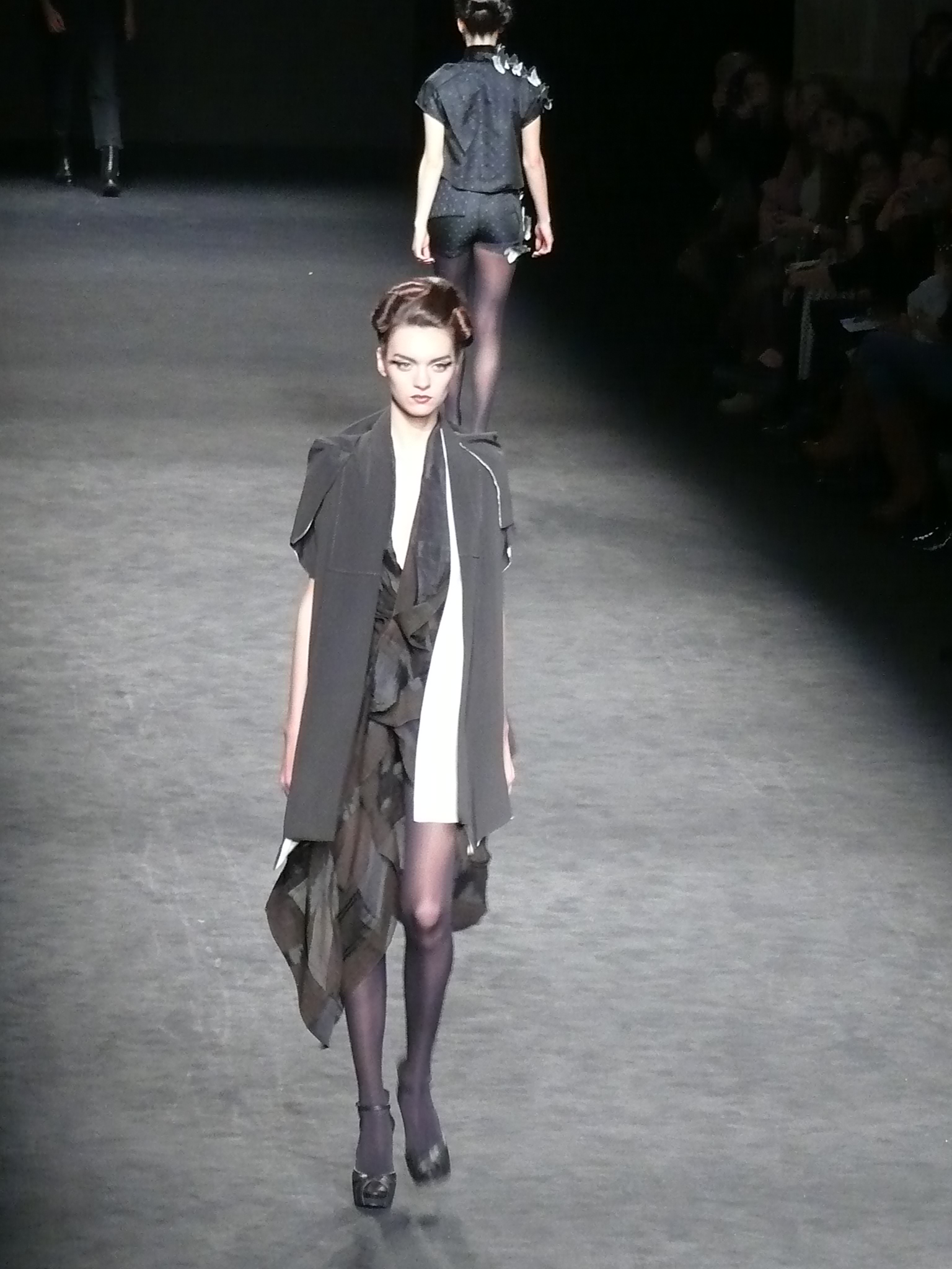 ¡Hola! Hoy ha dado el pistoletazo de salida la 080 Barcelona Fashion (esta ocasión en el Museo Marítimo), y he podido asistir a uno de los desfiles, el de Celia Vela. Para el próximo Otoño Invierno propone una colección un tanto transgresora, en la que predomina el tejido efecto piel, escotes pronunciados en formas geométricas, formas oversize, el negro y los tonos grises como protagonistas, y también una parte más oriental en sedas lisas y estampadas combinadas con prendas de punto.