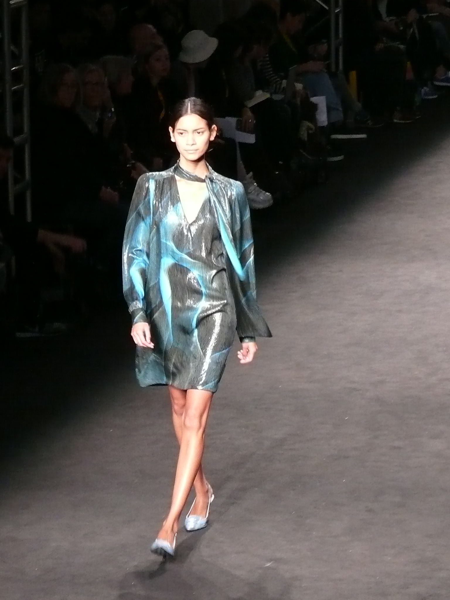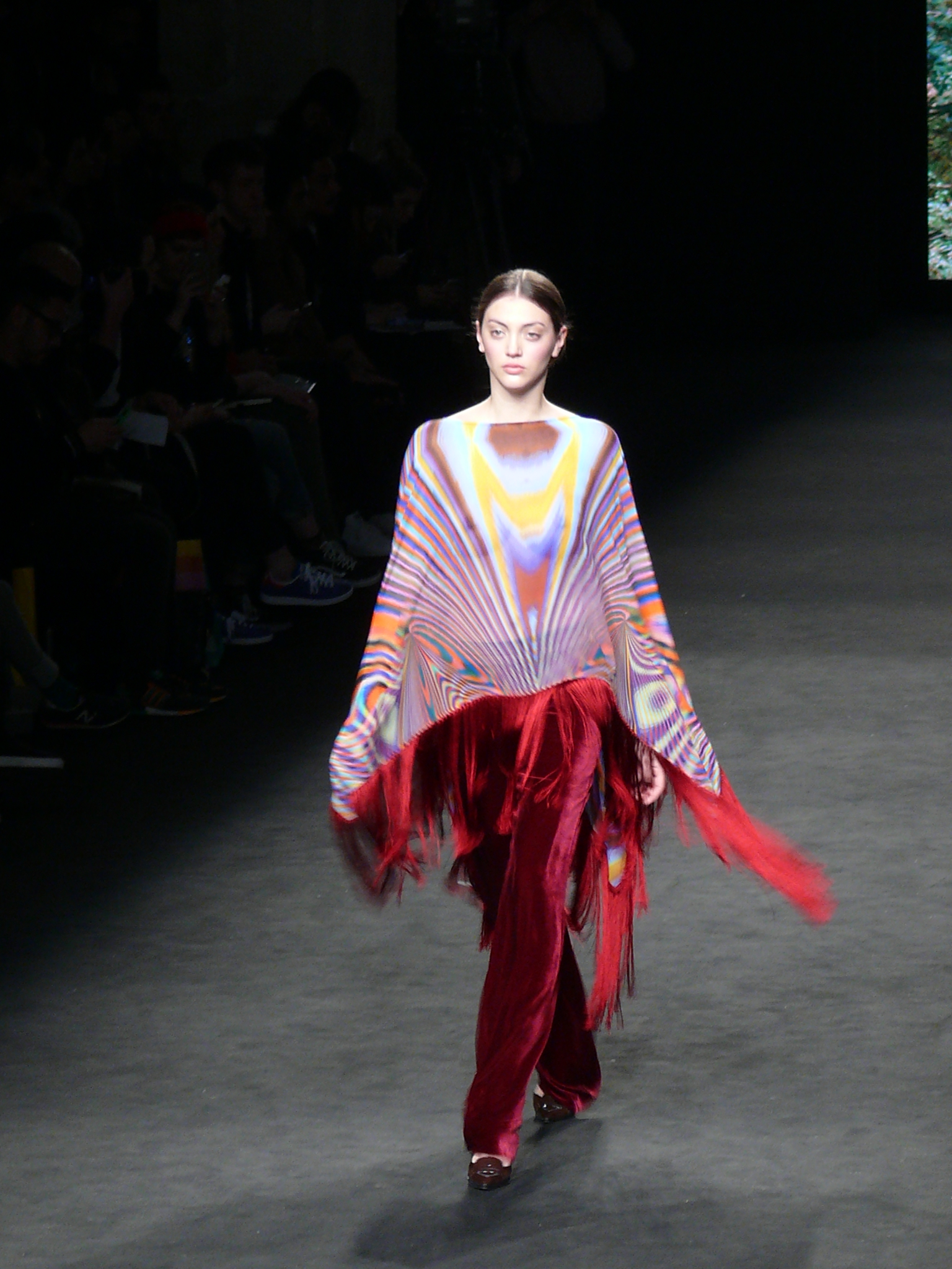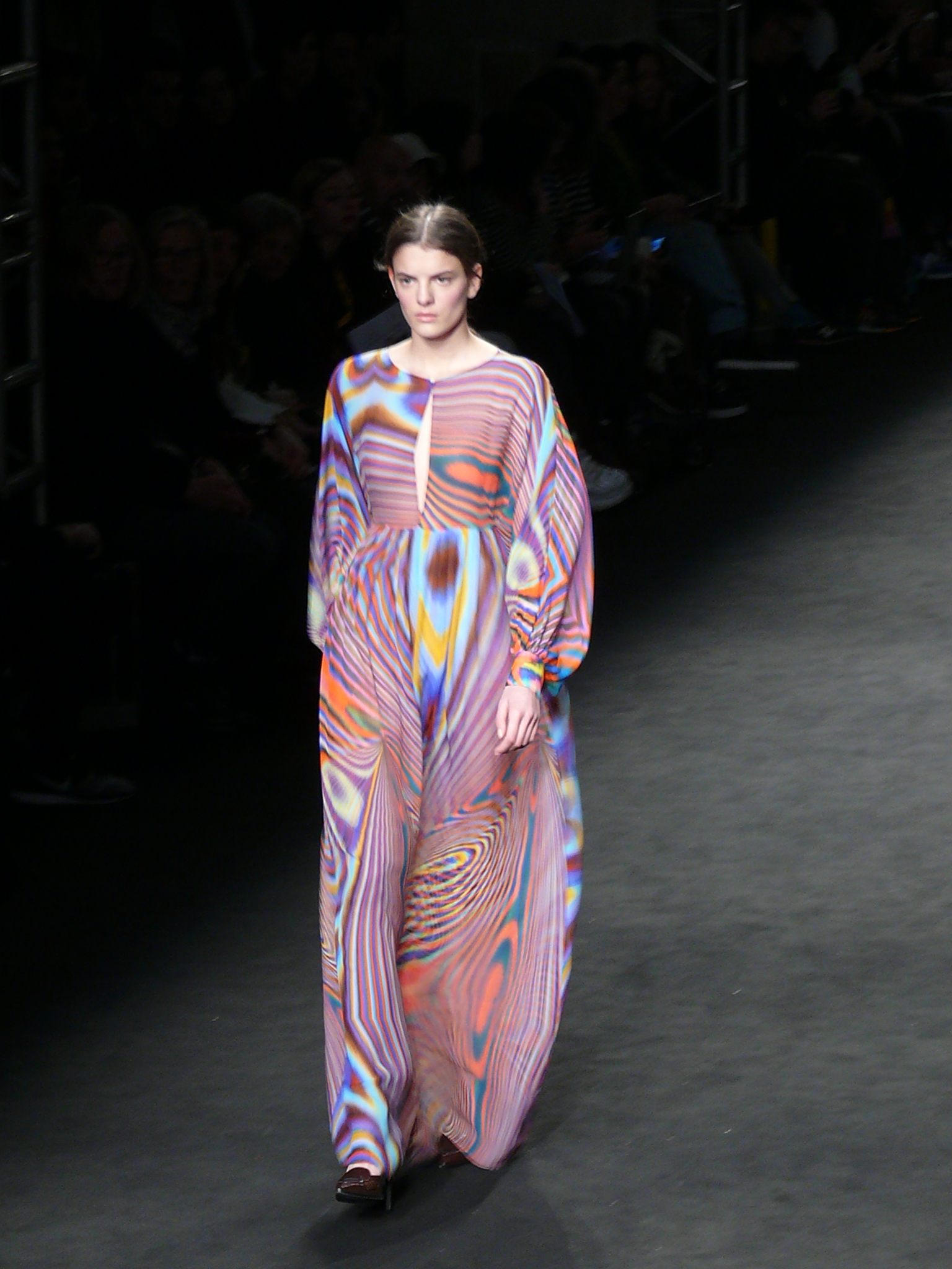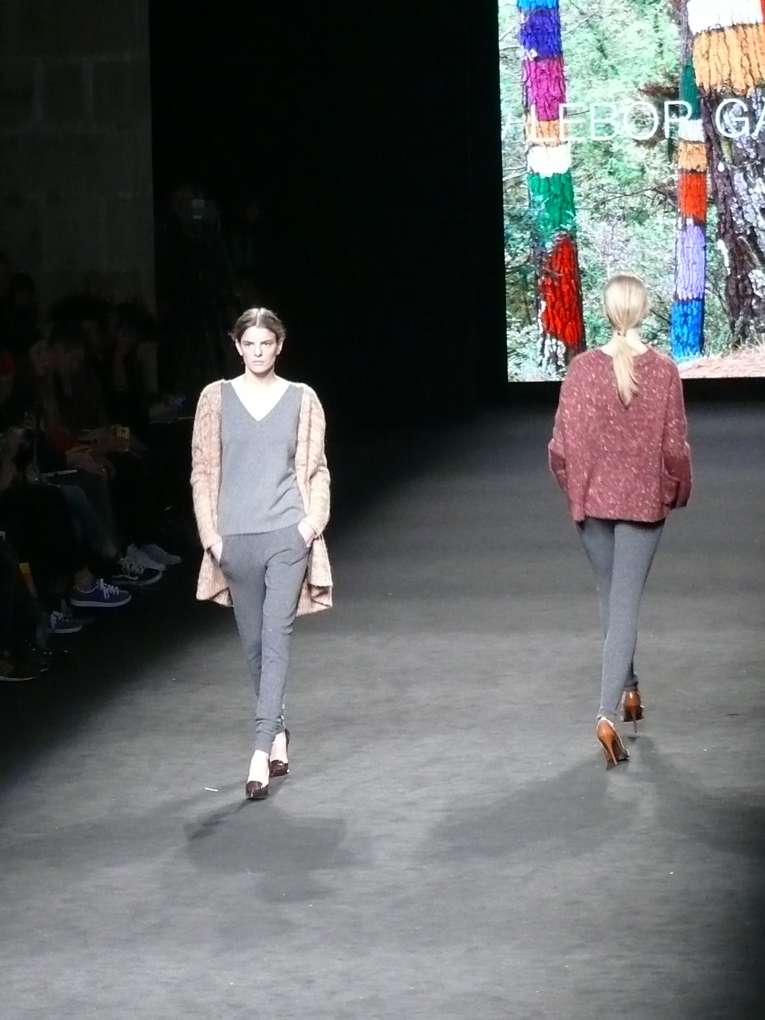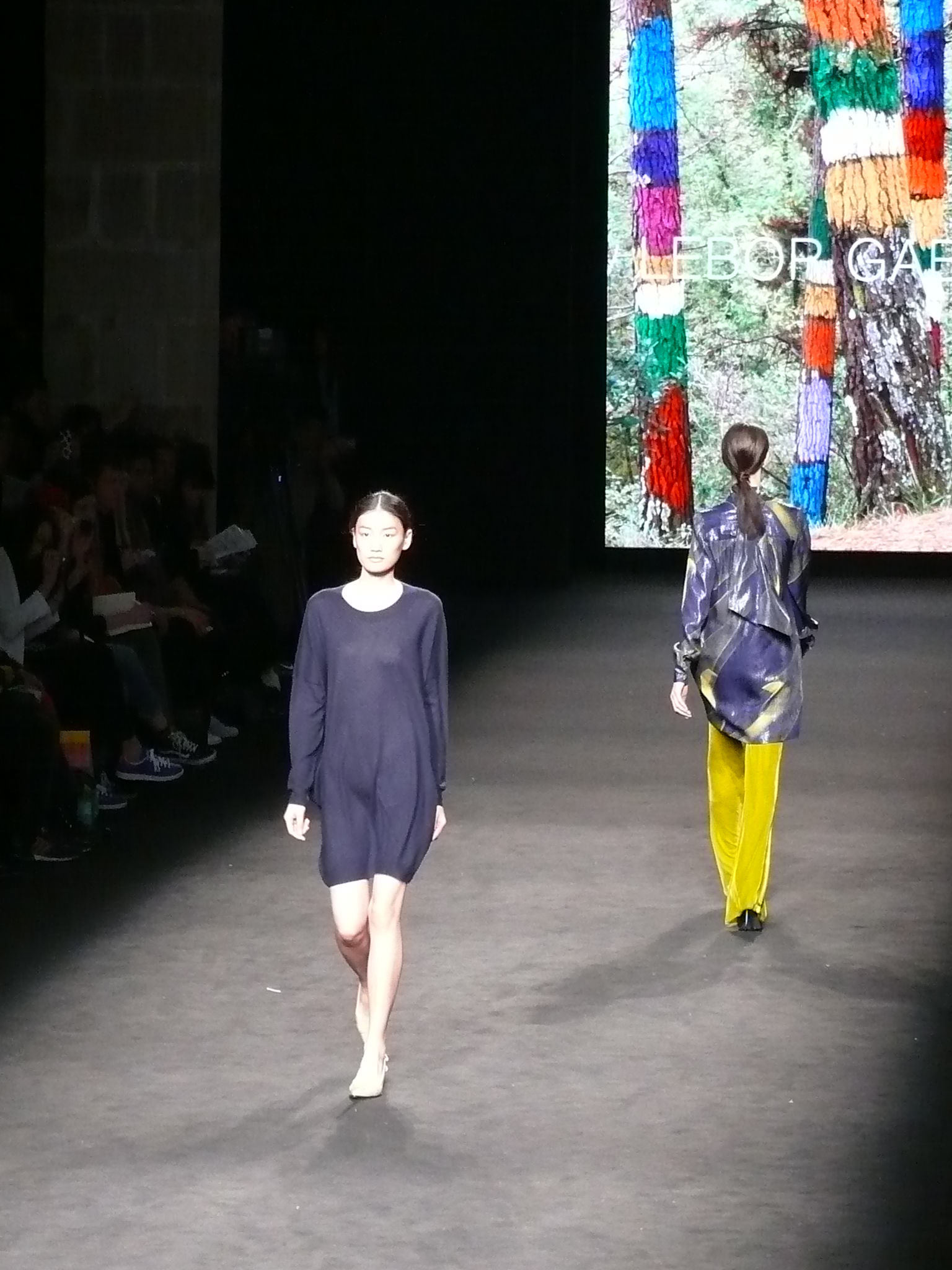 Y por otra parte el de la diseñadora Lebor Gabala, con una colección que nos transporta a los sesenta, aunque en algunos casos con tejidos tecnológicos (propios del siglo XXI). Contrastes: prendas urbanas con acabados rústicos, sedas combinadas con aires deportivos. Estampados psicodélicos, prendas de terciopelo y mucho color.