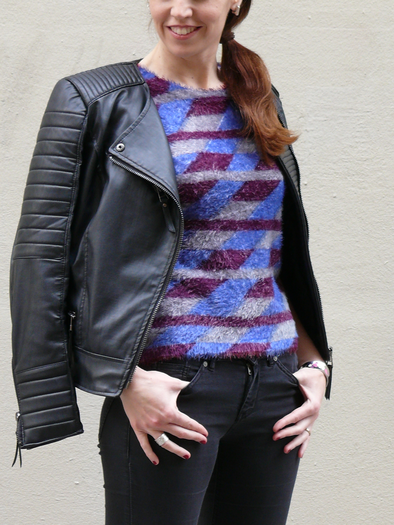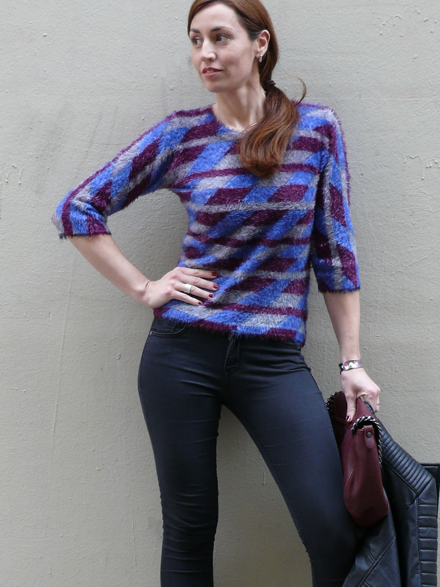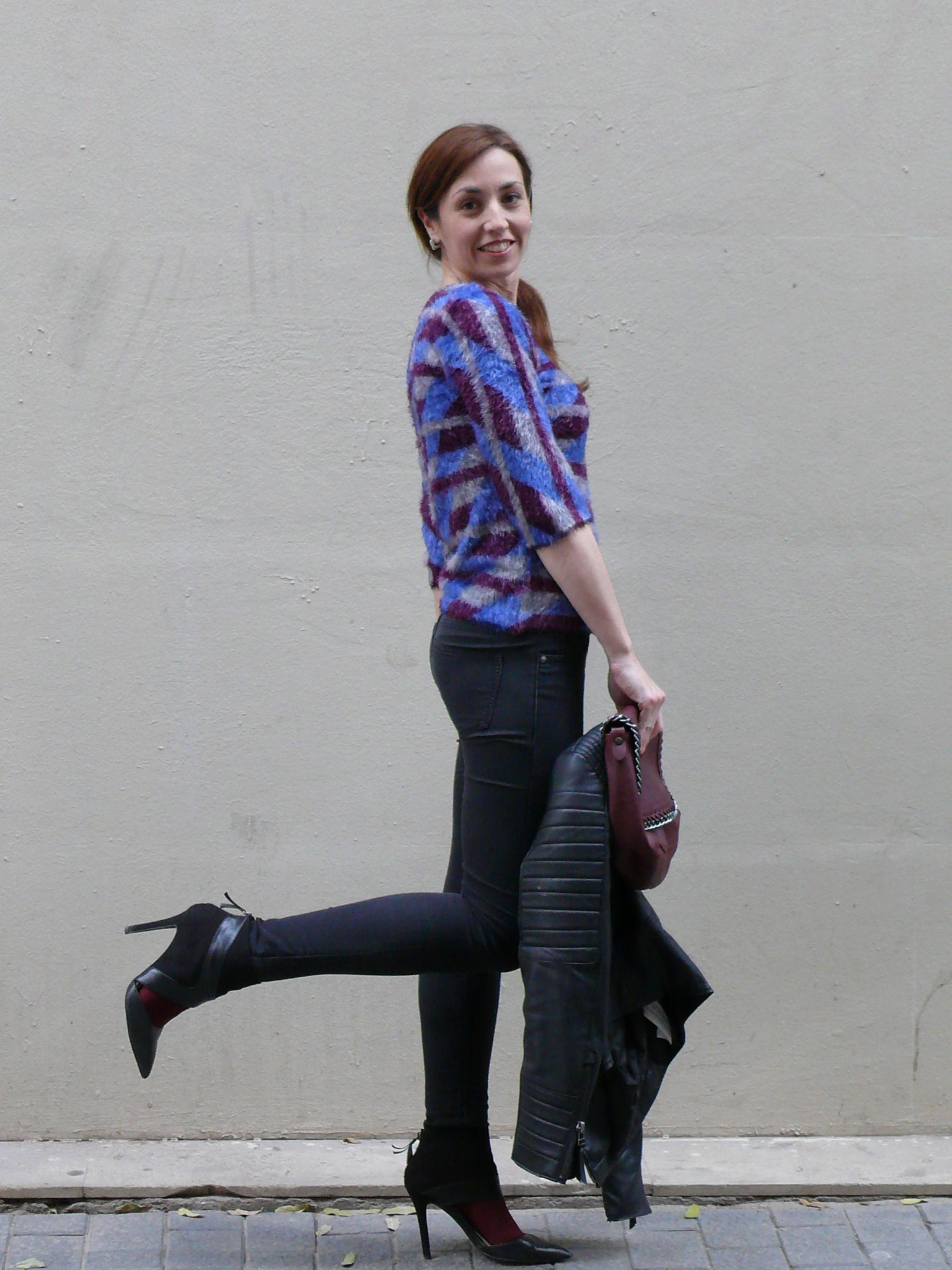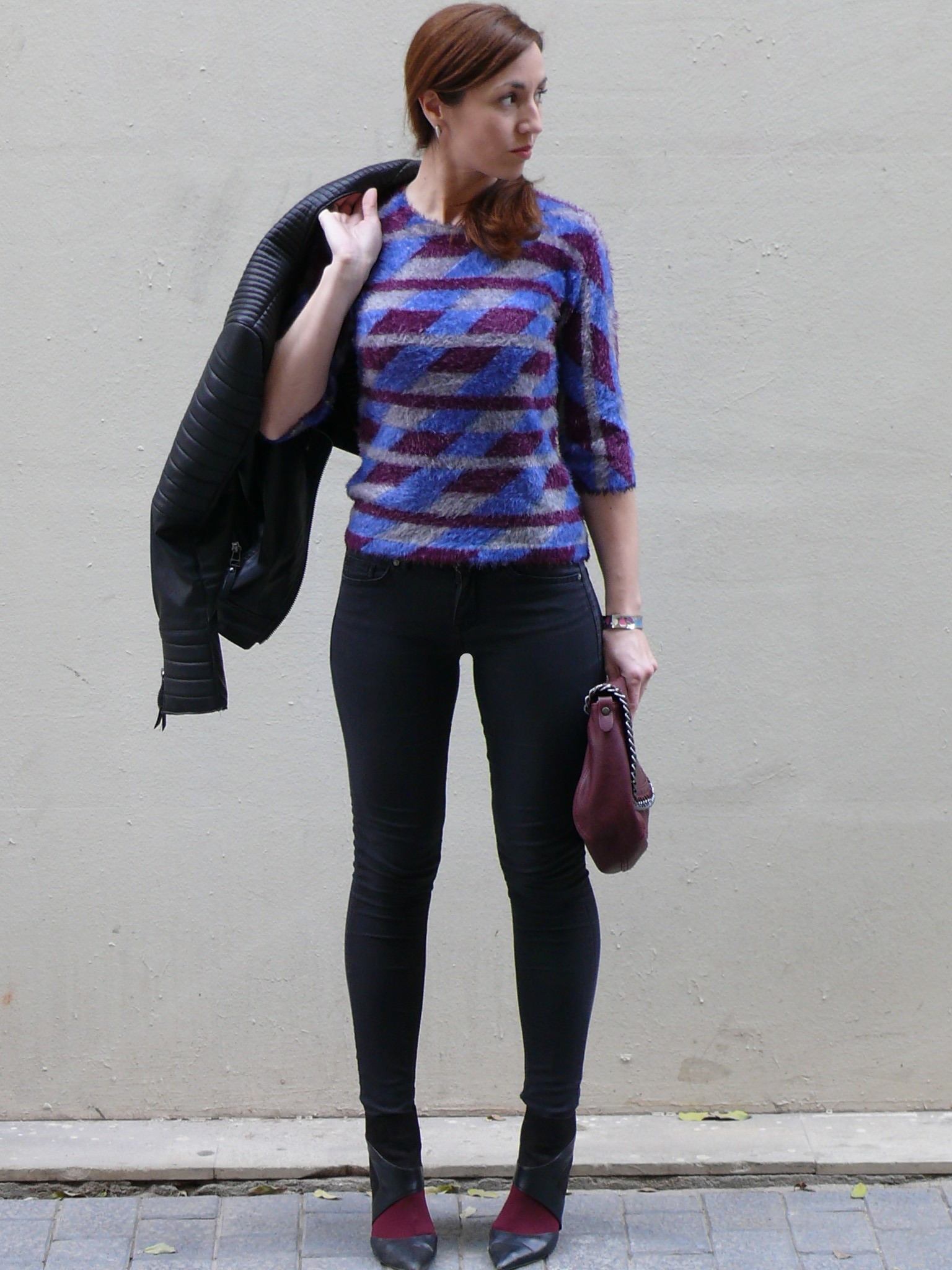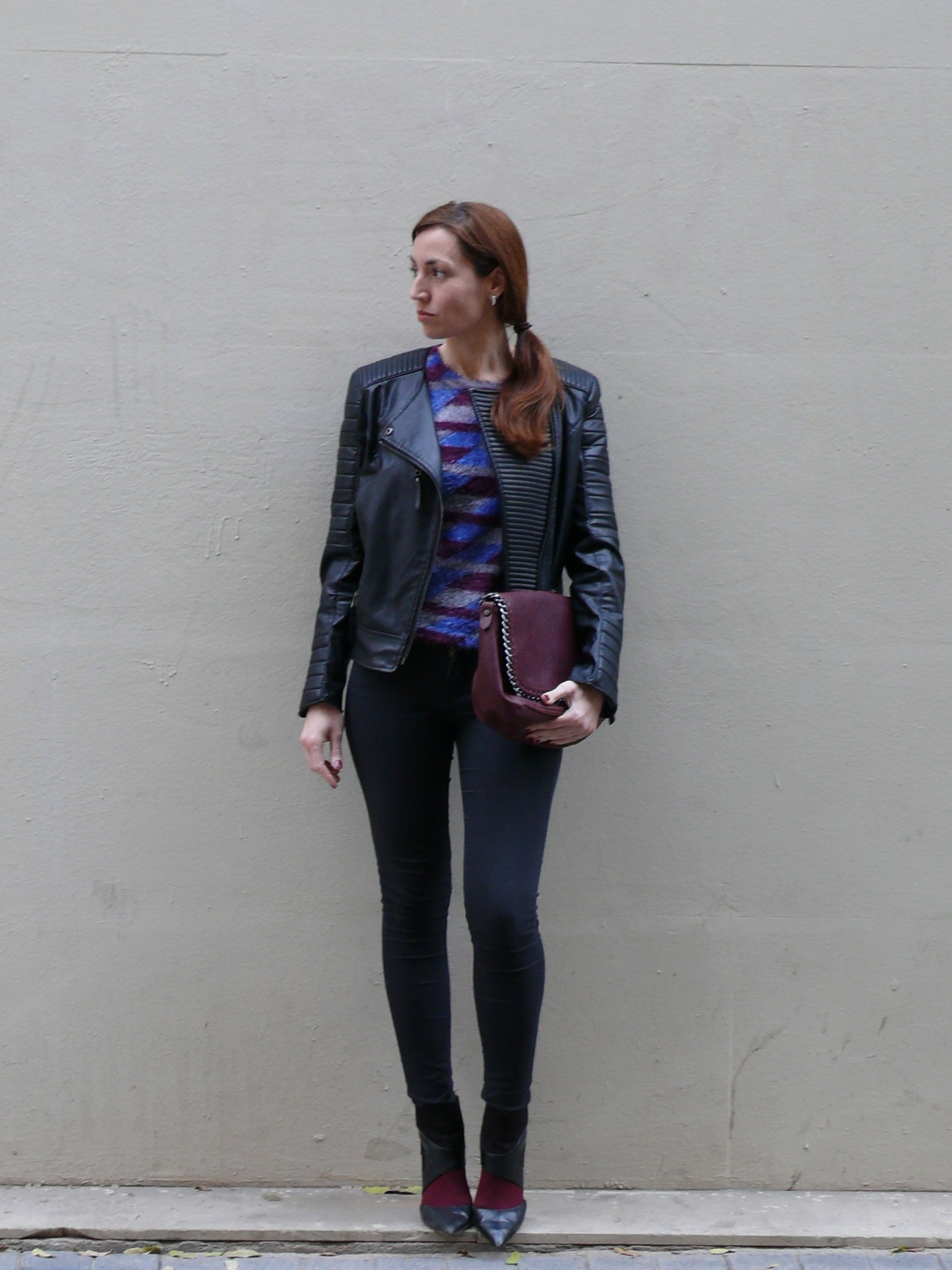Look: Cazadora perfecto y bolso de Mango (A/W 13-14), pantalón de Zara (old), botines de Zara (A/W 13-14) y jersey de Custo Barcelona (A/W 14-15).