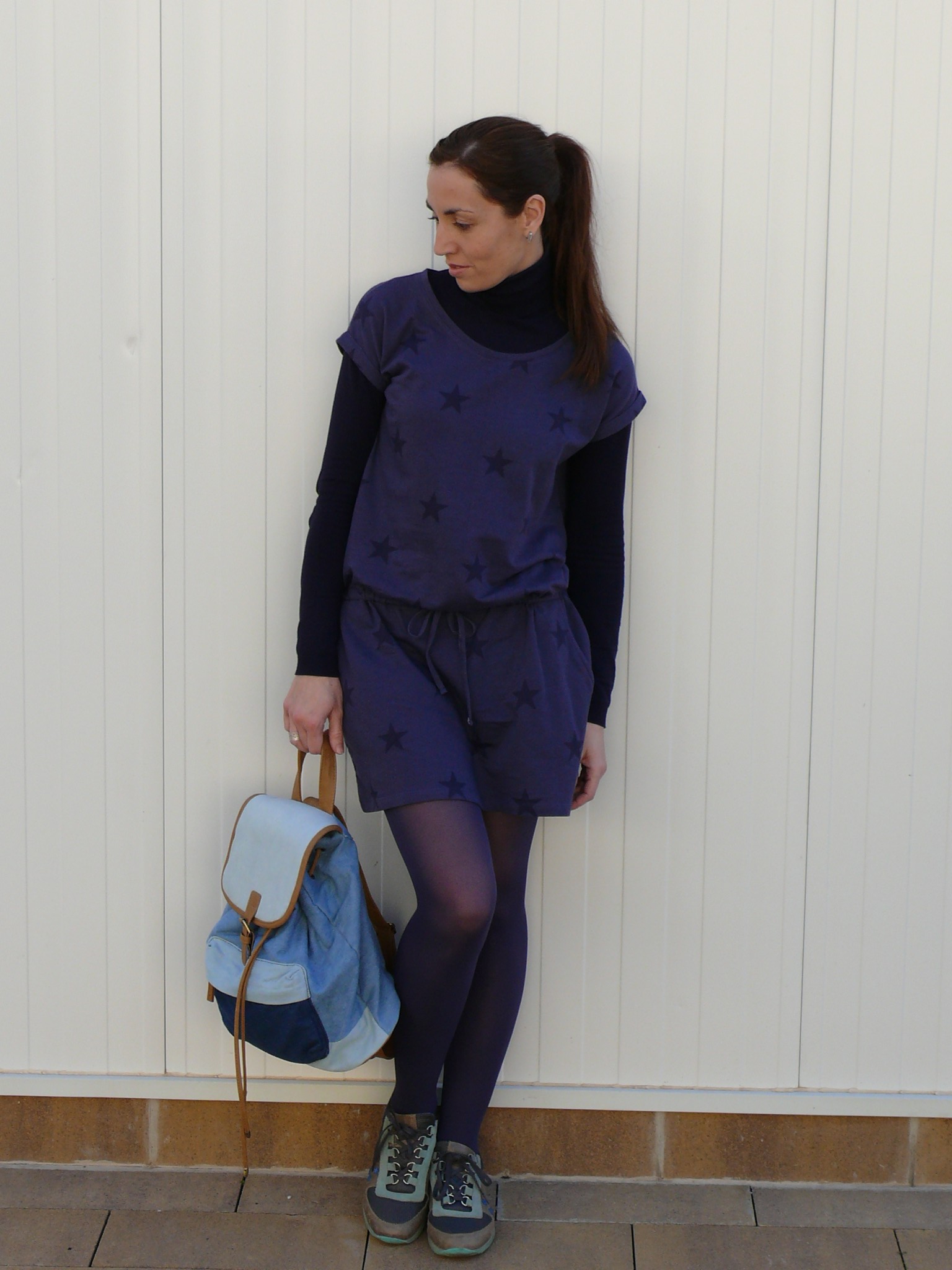 Look: Vestido Tezenis (A/W 14-15), jersey básico STR (A/W 14-15), medias Calzedonia, zapatillas de Fosco (S/S 13) y bolso/mochila de Suiteblanco (A/W 14-15).