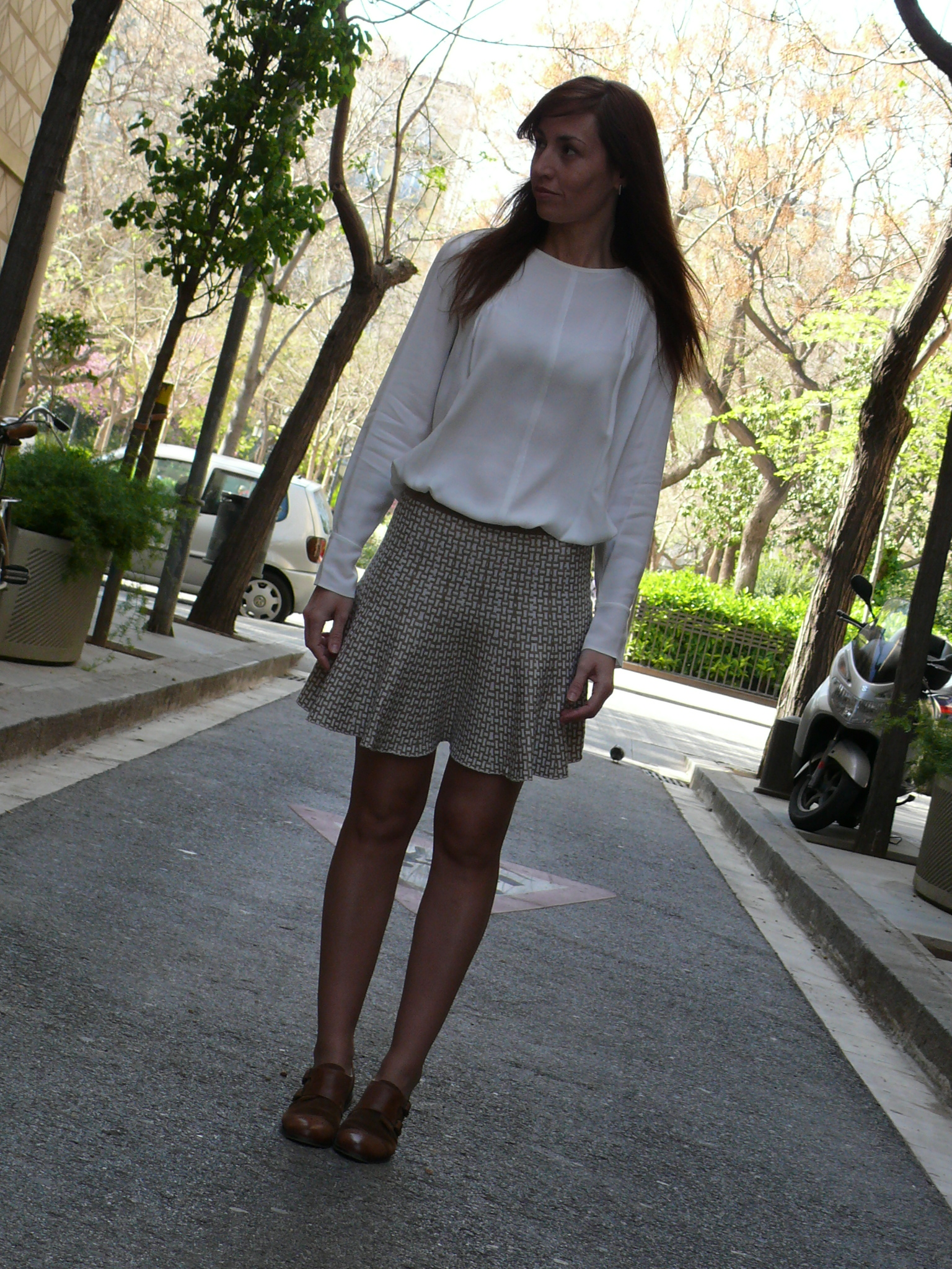 Llevo blusa de Zara (S/S 15), falda de Oxygene (A/W 14-15), zapatos de Pull & Bear (A/W 14-15) y bolso de Mango (old).
