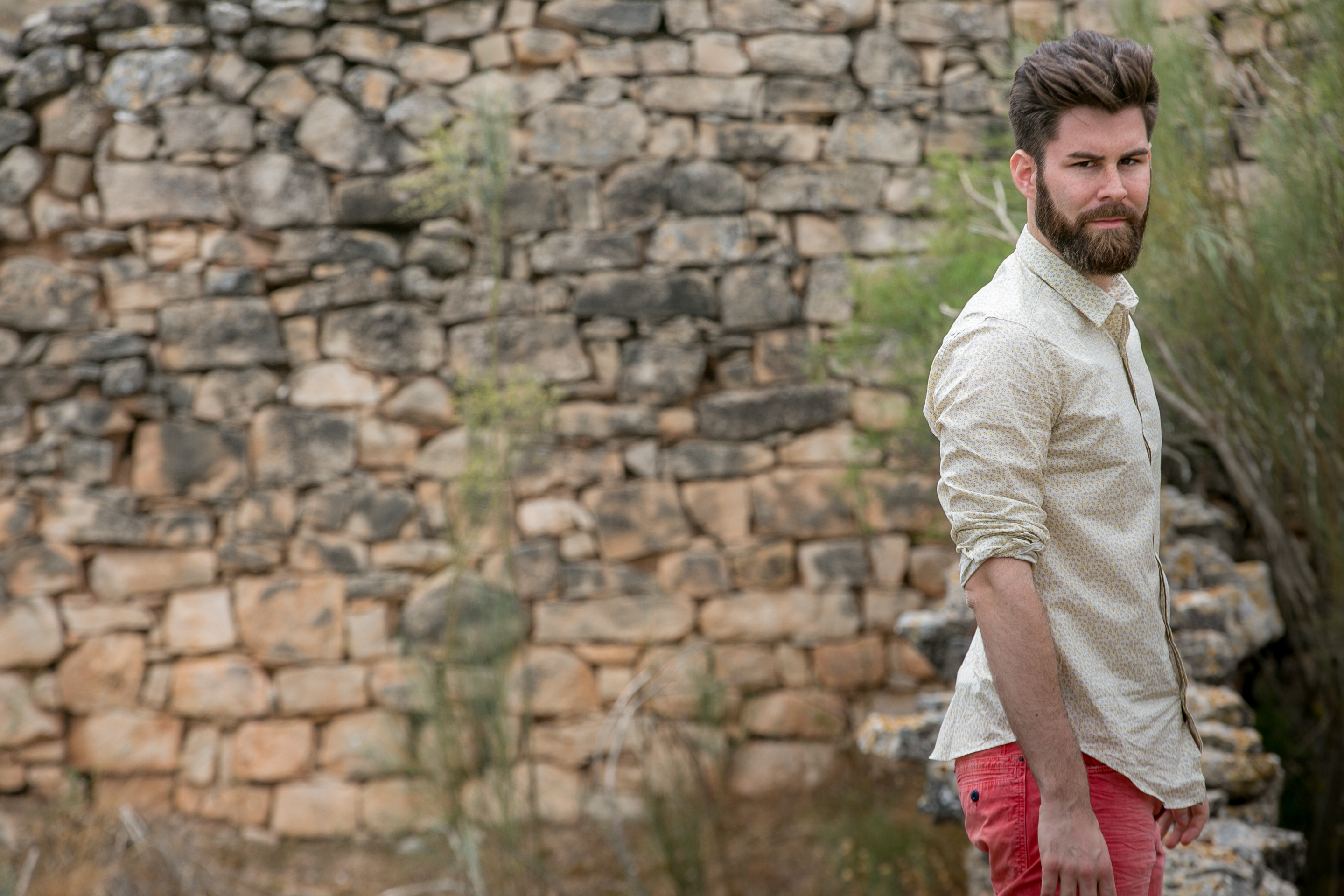 Looks Enrique: Pantalón color mostaza de Jack & Jones, pantalón rojo washed de Antony Morato, camisa de Antony Morato y cinturón de Levi’s. Todo de Torrijos Moda.