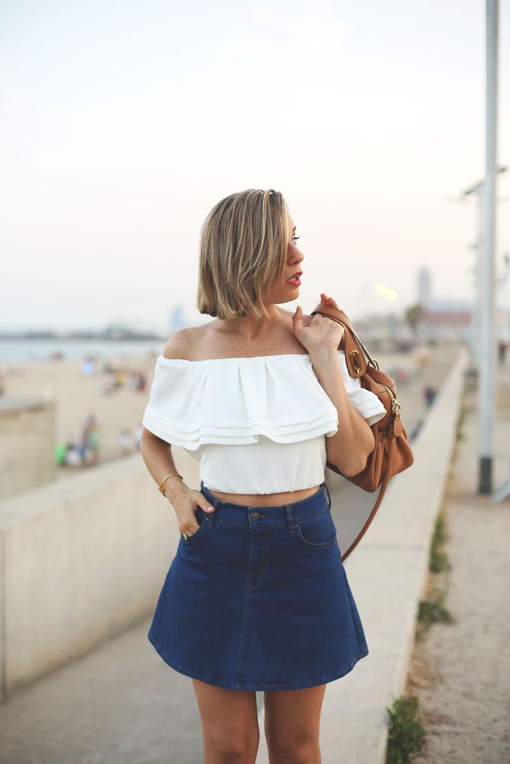 Ya sé que pocos días quedan para lucir esta tendencia porque el tiempo no está siendo muy favorable para ello, pero que sepáis las que ya tenéis el top en el armario para otro verano, que esta prenda resulta muy favorecedora, ya que al potenciar hombros y dar más volumen con el volante que suele traer incorporado, afina visualmente la cintura y potencia la figura «reloj de arena», que es considerada la ideal.