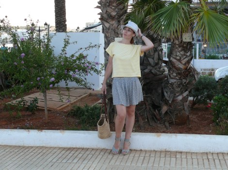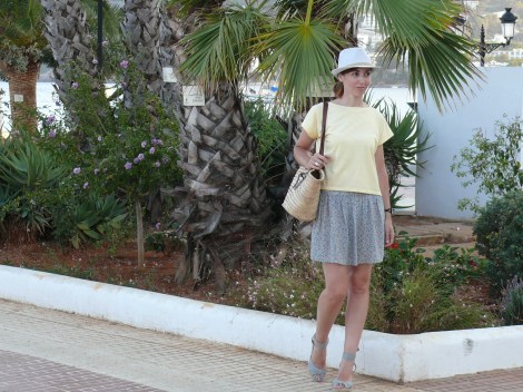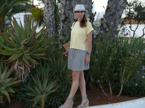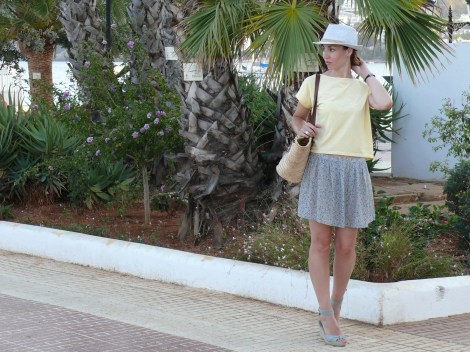 Outfit: Falda de System Action (2016), camiseta de Susi Sweet Dress (S/S 15), cesta (old), cuñas de Natura (S/S 16) y sombrero borsalino de tienda local (S/S 17).