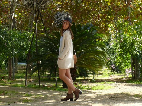 Outfit: Falda y camisa de Stradivarius (old), botines y bolso de Mango (old), y chaqueta y sombrero de tienda local (old).