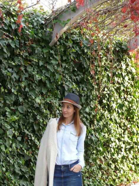 ¡Hola! Hoy comparto un post con el look de ayer, en el que combino falda y camisa tejanas con una chaqueta de punto en color crudo. No sé a vosotr@s pero a mi me encanta esta combi de punto & denim, me produce una sensación como de confort o comodidad muy agradable. Los complementos (botines y bolso) en color marrón que combinan con mil outfits y, por último, le doy el toque de estilo con el sombrero.