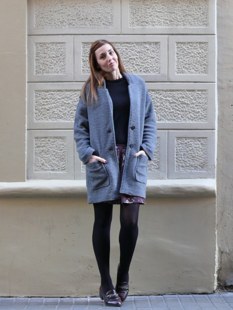 ¡Hola! Hoy comparto un look en el que combino una falda estampada de flores del pasado invierno, con este abrigo/chaqueta (podria definirse como americana o blazer de paño oversize) ideal para entre tiempo cuando ya empieza el frío. Las solapas de la chaqueta se suelen llevar dobladas hacia fuera pero a mi de vez en cuando me da el punto de llevarlas así… 😉