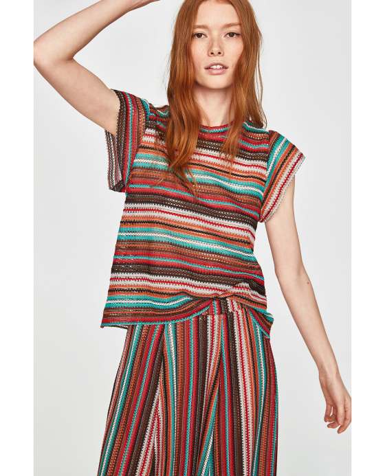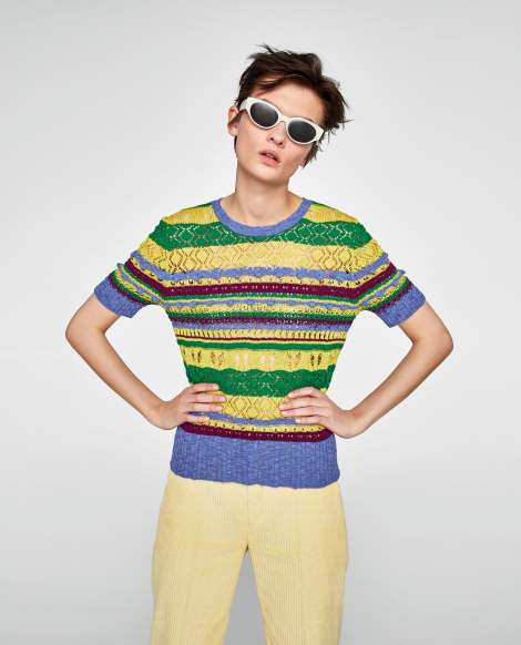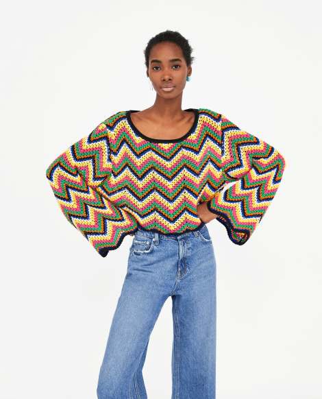 Adjunto una selección de looks compuestos por prendas de punto y similares (crochet, jacquard), que además vienen cargados, en la mayoría de los casos, por colores vivos y un estilo retro que nos conecta con décadas pasadas.                                                                                        Imágenes de Zara.es