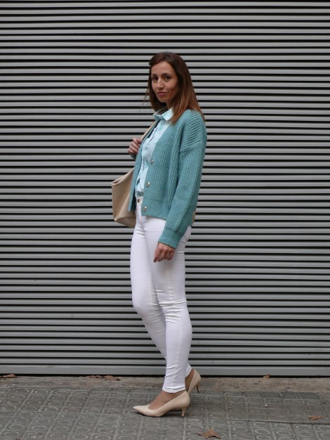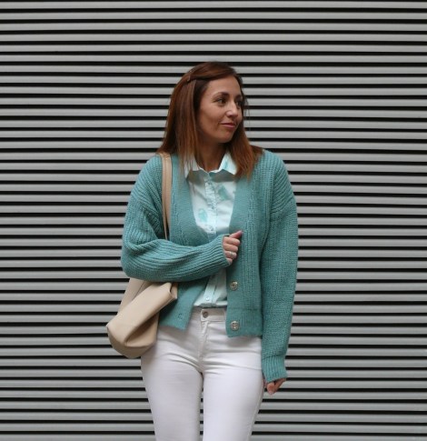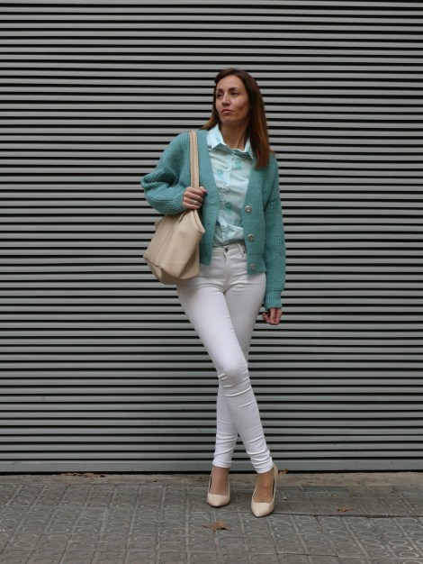 En este post comparto un outfit de uno de estos días típicos de veroño, en los que, aunque a mediodía haga calor y se pueda ir prácticamente de verano, durante las primeras y últimas horas del día ya apetece llevar chaqueta. En esta ocasión me puse la chaqueta de mi color favorito, combinada con jeans blancos y camisa de estampado de buhos (que ya había compartido con otros looks) de tonalidades de la misma gama que la chaqueta.