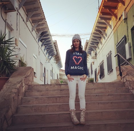 Hoy comparto un look de las pasadas vacaciones navideñas, de uno de esos días fríos en los que de entrada no apetece mucho sacar fotos, pero que la felicidad de estar de vacaciones -y en tu tierra-, te da una motivación extra para hacerlas y quitarte hasta la chaqueta… 😉