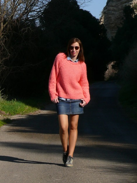 ¡Hola! Hoy comparto un look reciente cuyo protagonista es el jersey de punto grueso en color rosa flúor. Los tonos neón o flúor han sido una de las tendencias de este otoño/invierno que, por lo que parece, se va a prolongar como mínimo durante la próxima temporada.