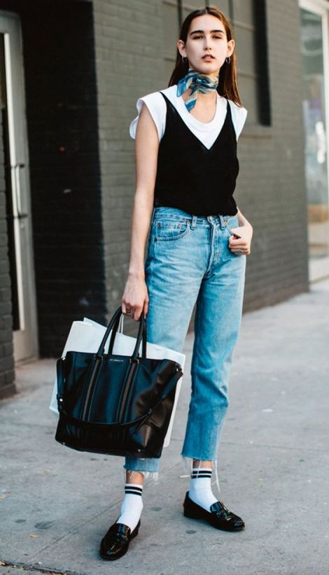 ¡Hola! En este post os comparto una tendencia que está dando mucho que hablar, que consiste en darle un protagonismo especial a los calcetines. La podemos ver en looks de diversos estilos, en algunos más sporty y en otros más serios que acaban resultando informales al aplicar esta tendencia. Como podréis observar en la selección de imágenes, predominan los calcetines deportivos blancos con rayas en la parte superior, los lisos blancos o de un solo color, y los estampados de colores.