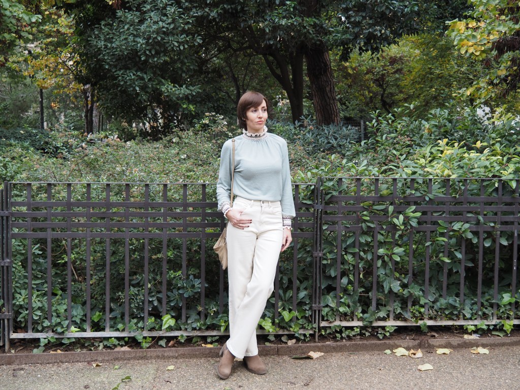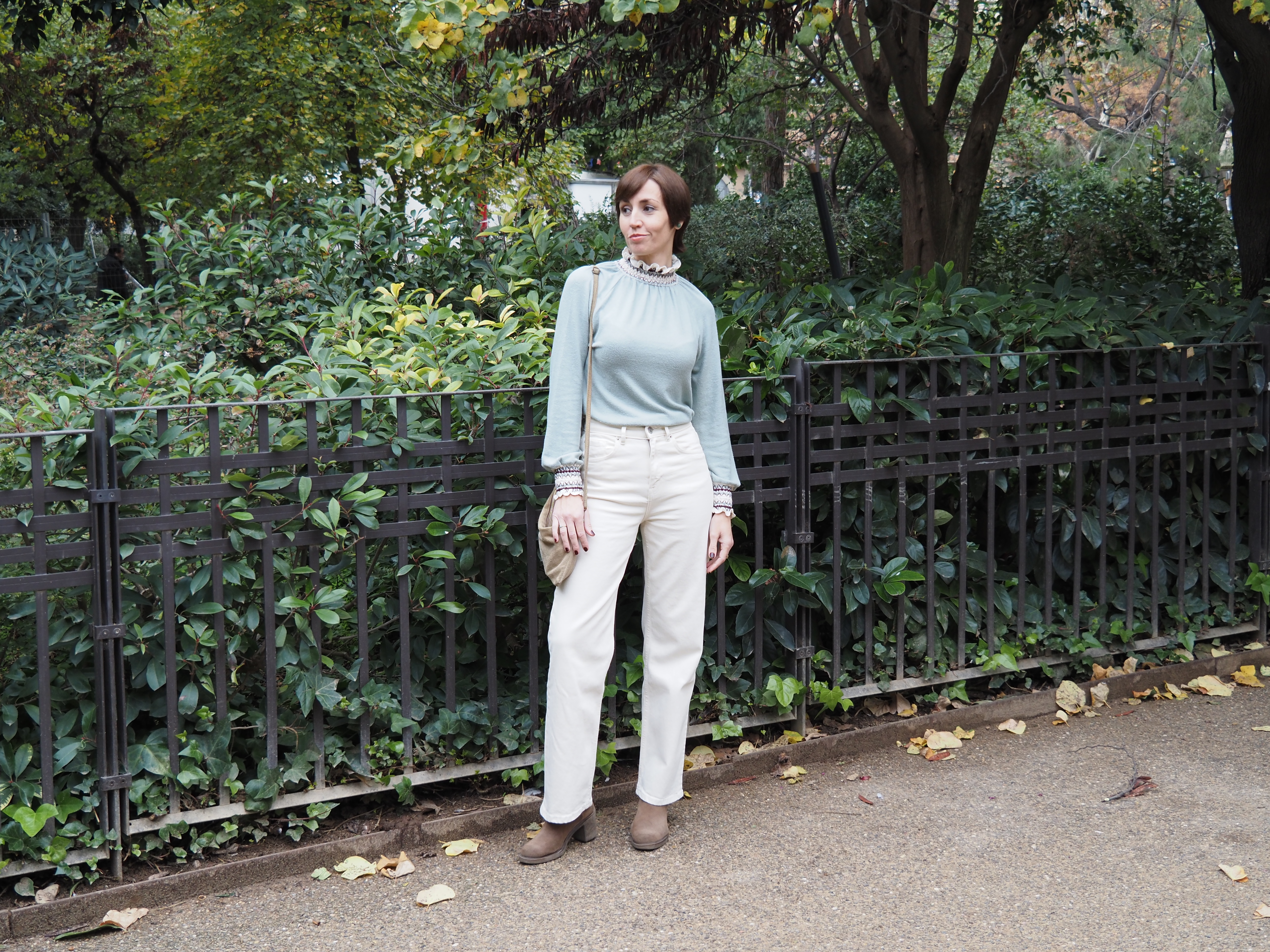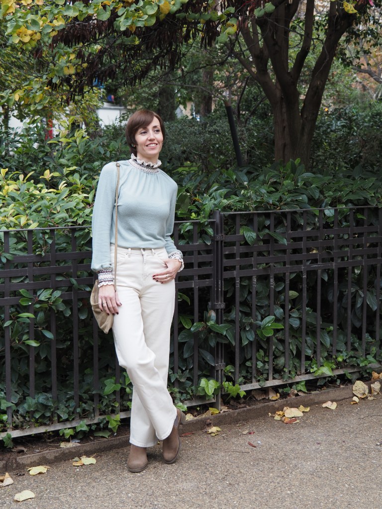 Hoy comparto un post breve con un look del pasado fin de semana, en el que combino los jeans en color blanco roto (que os mostré recientemente con otra combinación más veraniega), con un jersey que por el detalle de los puños y cuello tiene un toque especial, y unos botines comodísimos de hace varias temporadas.