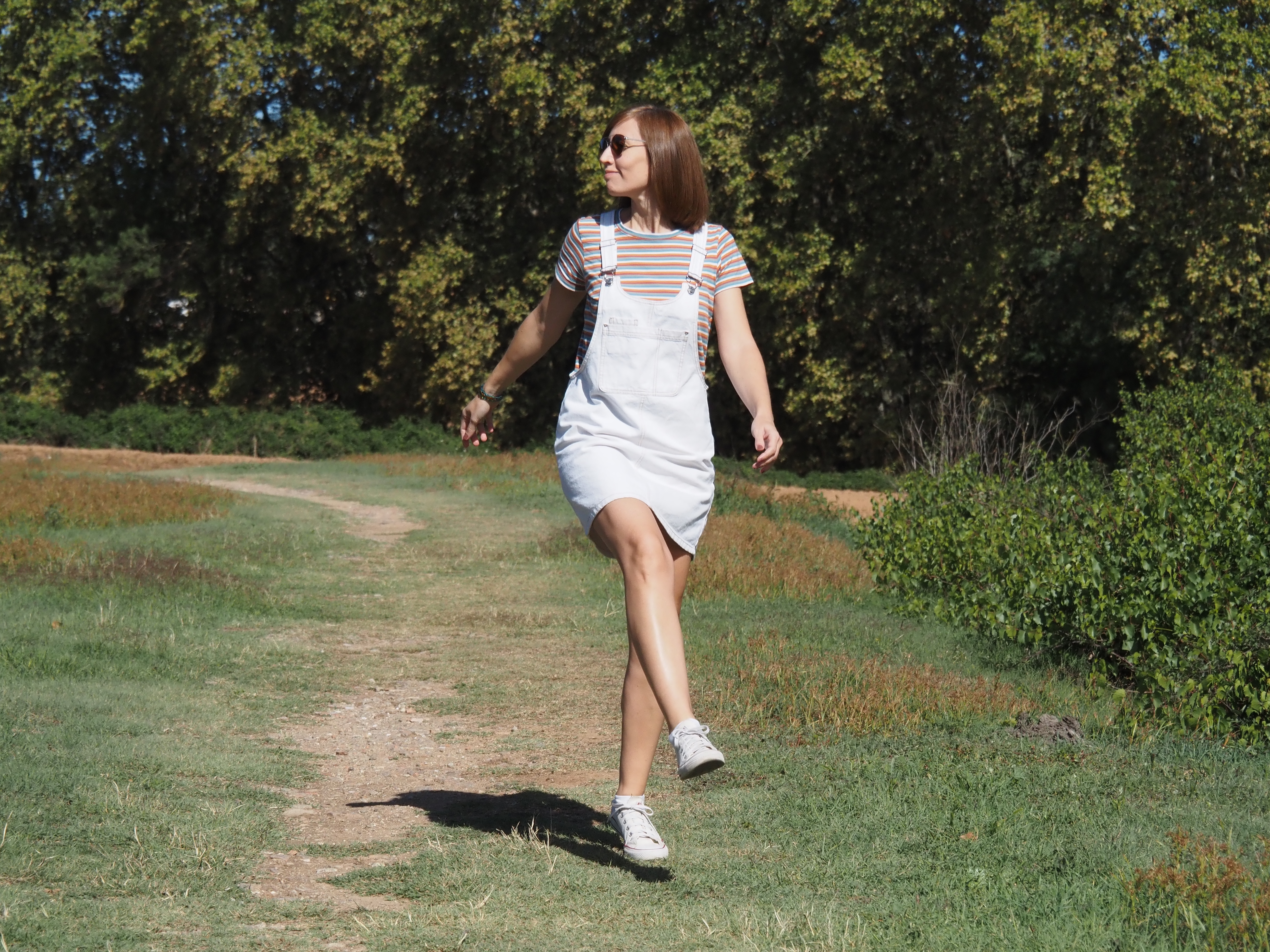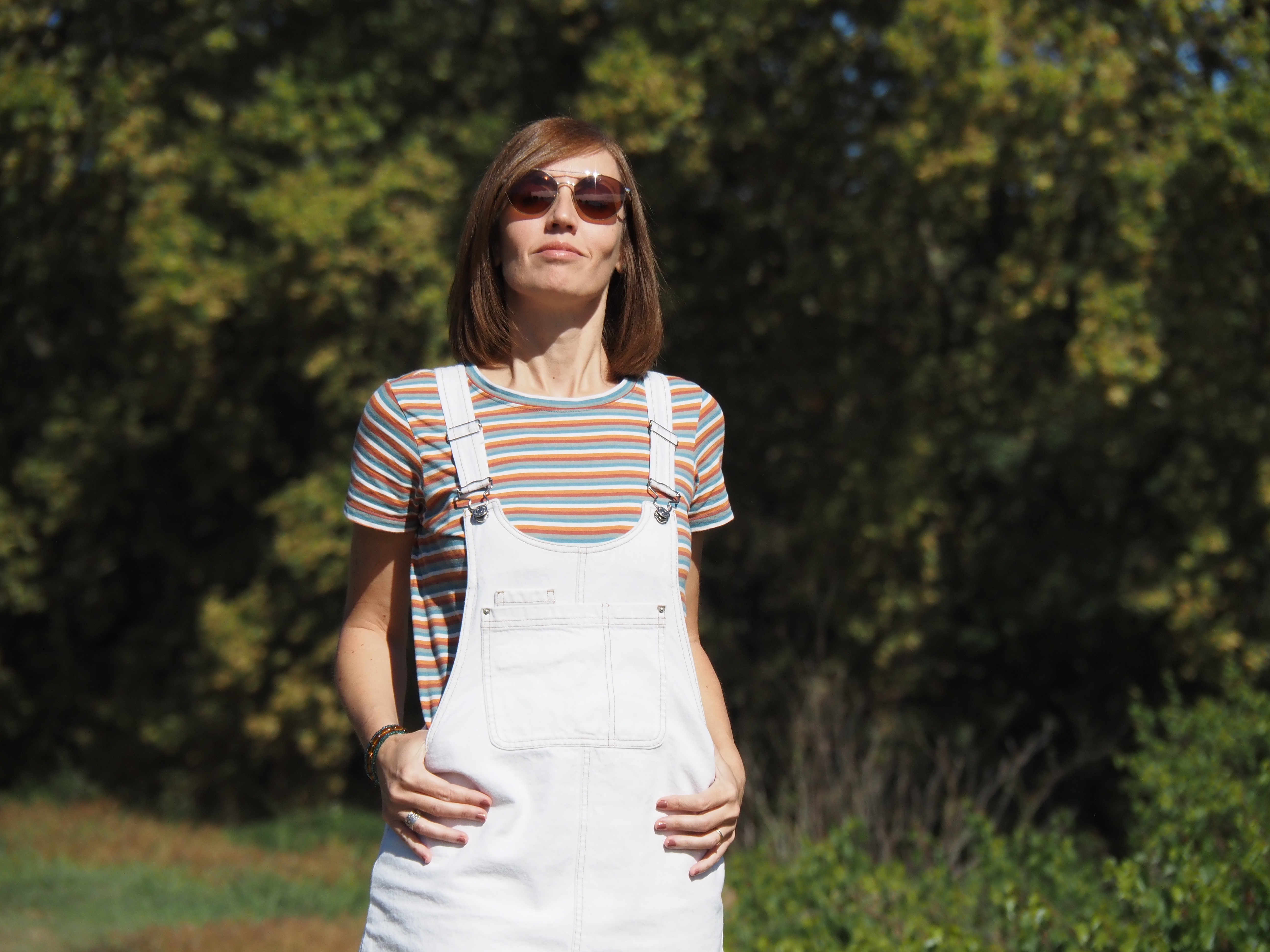 Outfit: Camiseta de Pull & Bear (S/S 22), peto de Lefties (S/S 22), zapatillas Converse (S/S 20), gafas de Vogue.