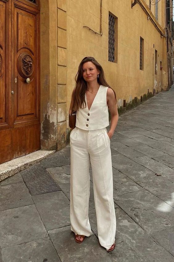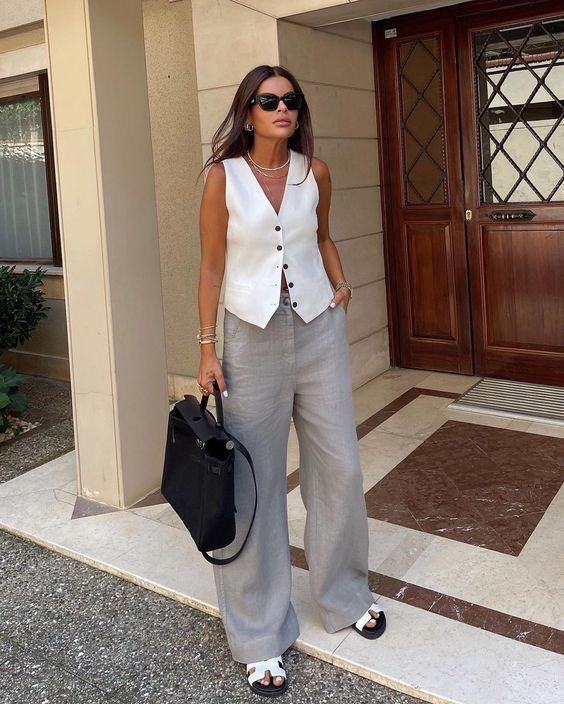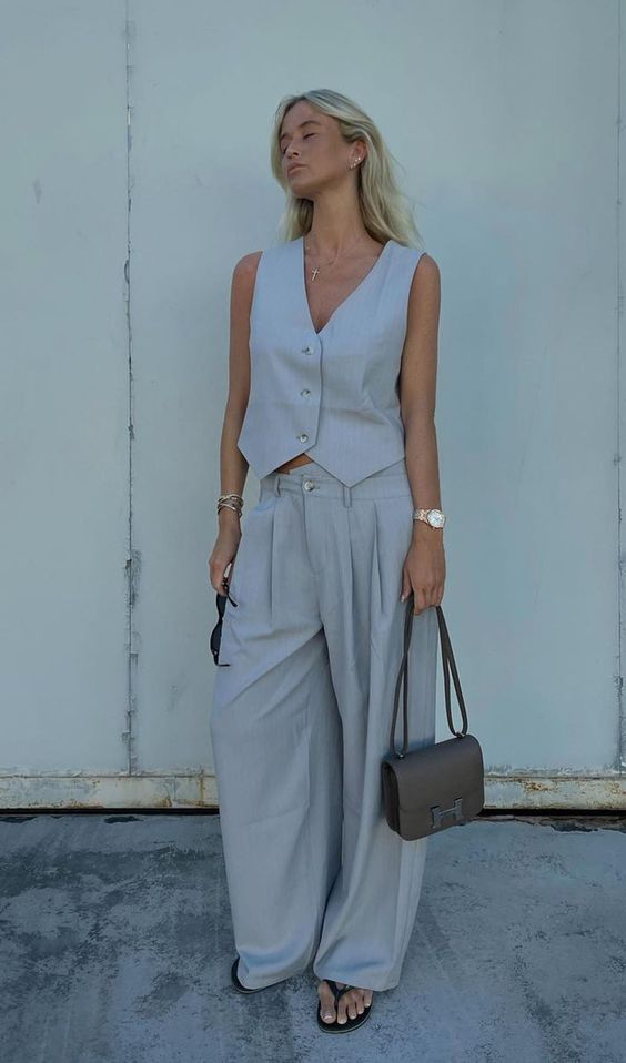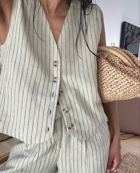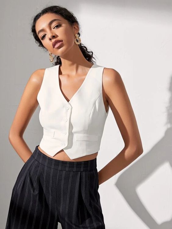 ¡Hola! Hace unas semanas compartí este post con una de las tendencias de esta primavera/verano, los chalecos bordados y acolchados, que generalmente se llevan encima de blusas o tops. El caso es que esta misma temporada son tendencia también otro estilo de chalecos, los que son más de vestir que se llevan a «modo top», y que suelen ir a conjunto con un pantalón de pinzas (aunque también se combinan con jeans o con pantalones diferentes al chaleco).